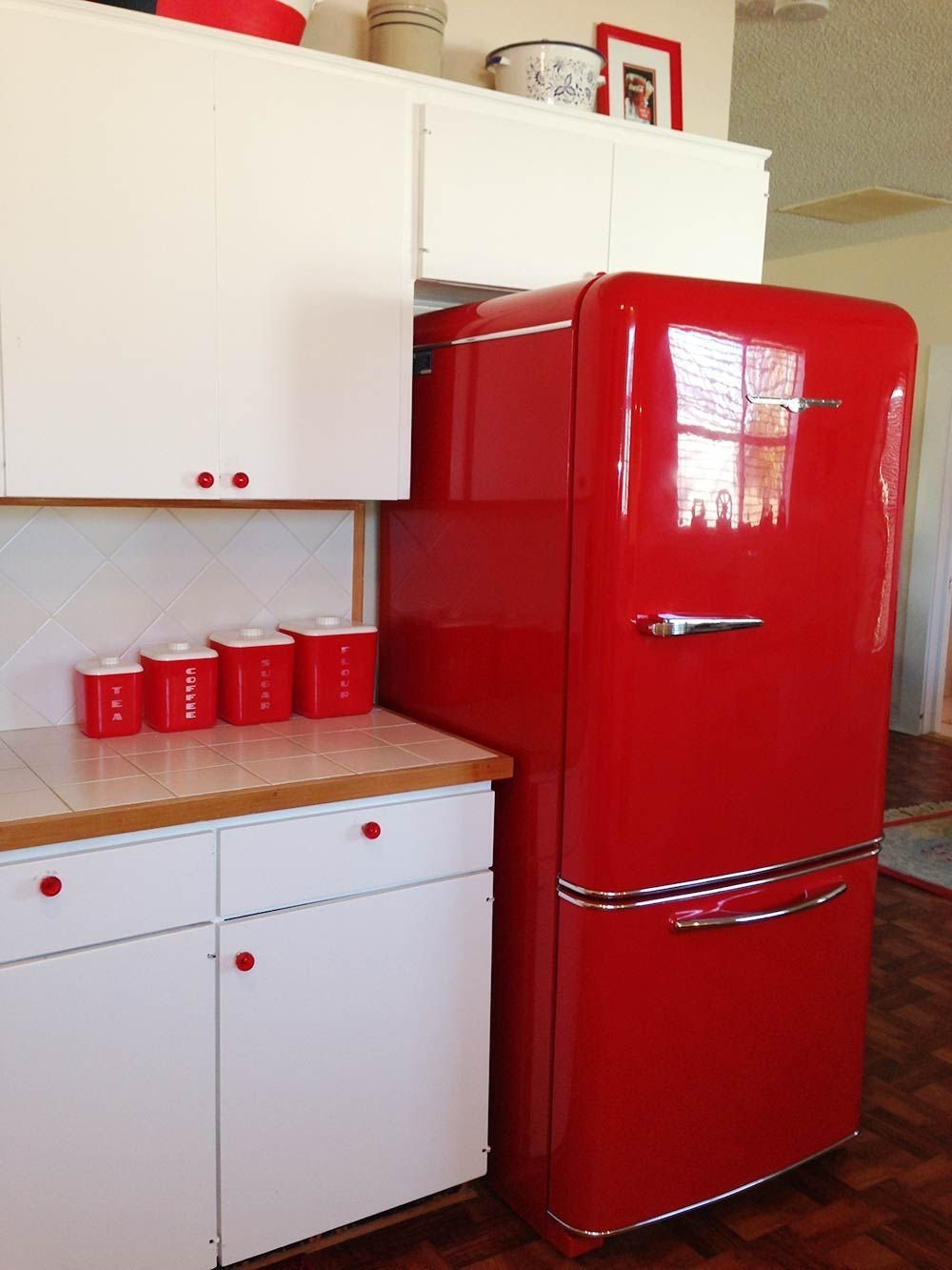 Красный холодильник в интерьере