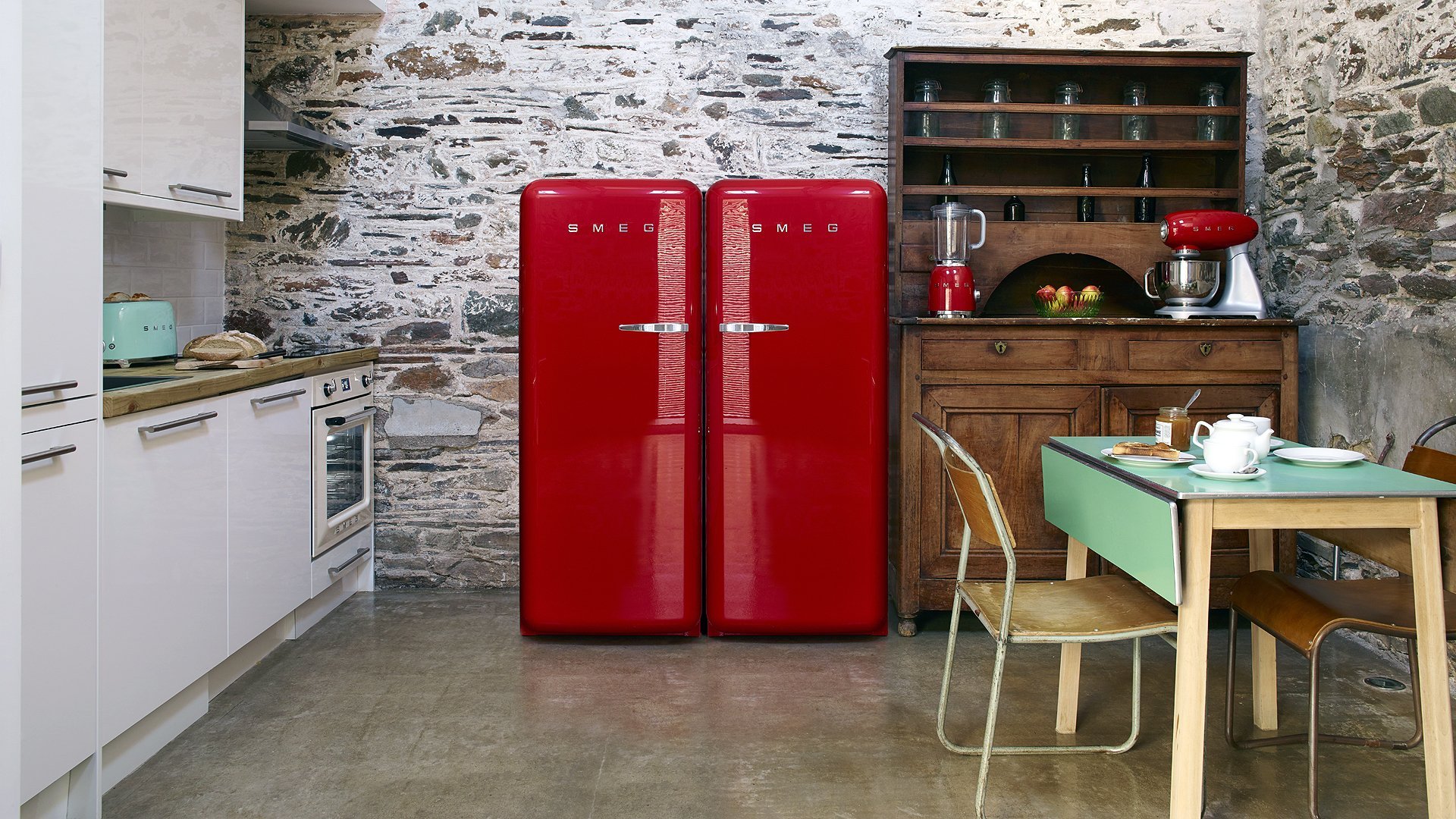 Холодильник Смег ретро красный интерьер