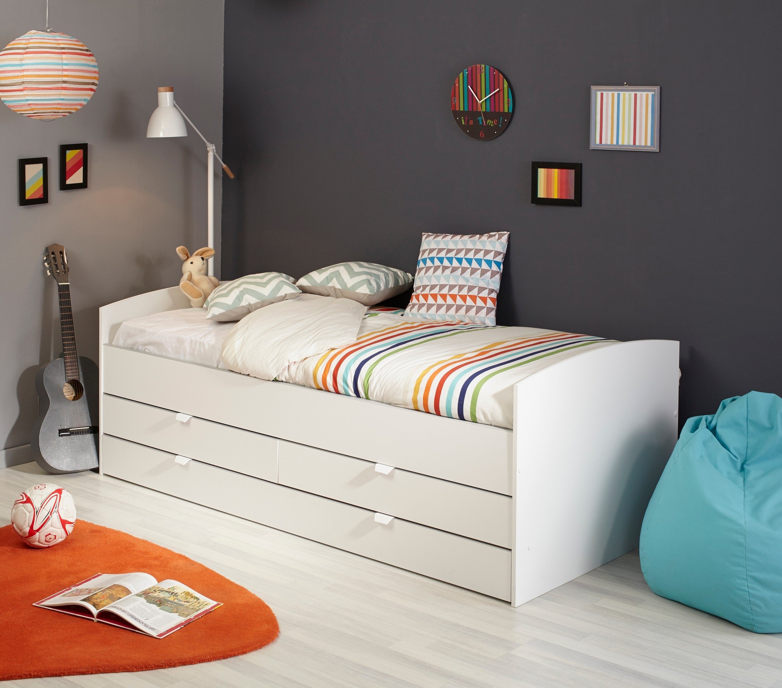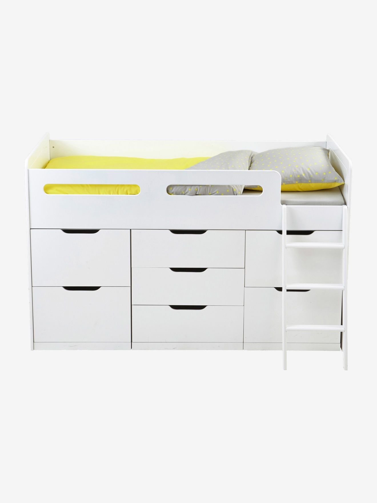 Happy Beds Roxy Stone White Contemporary Desk Drawers Shelf Storage Cabin Bed
