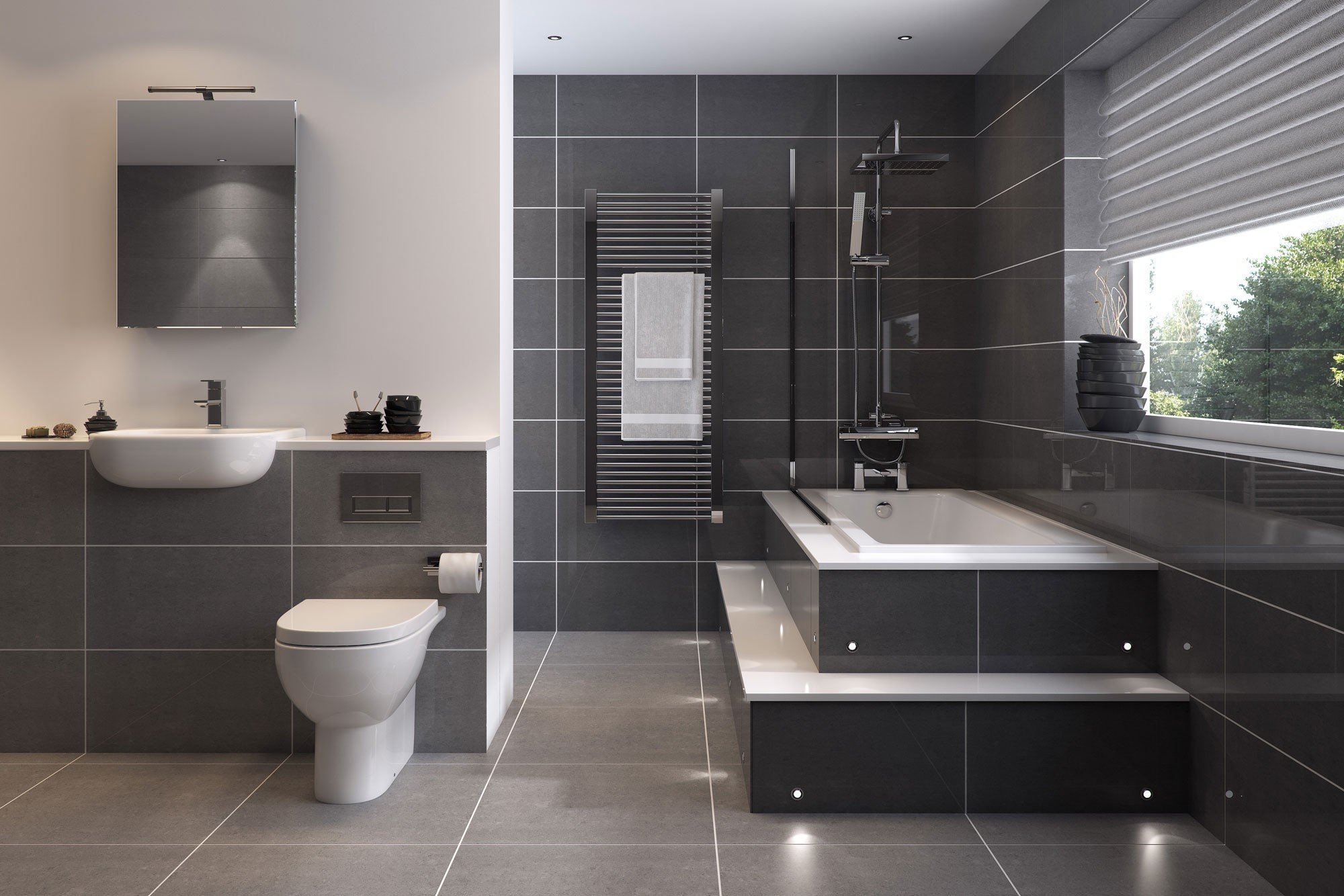Темно серая плитка в ванной