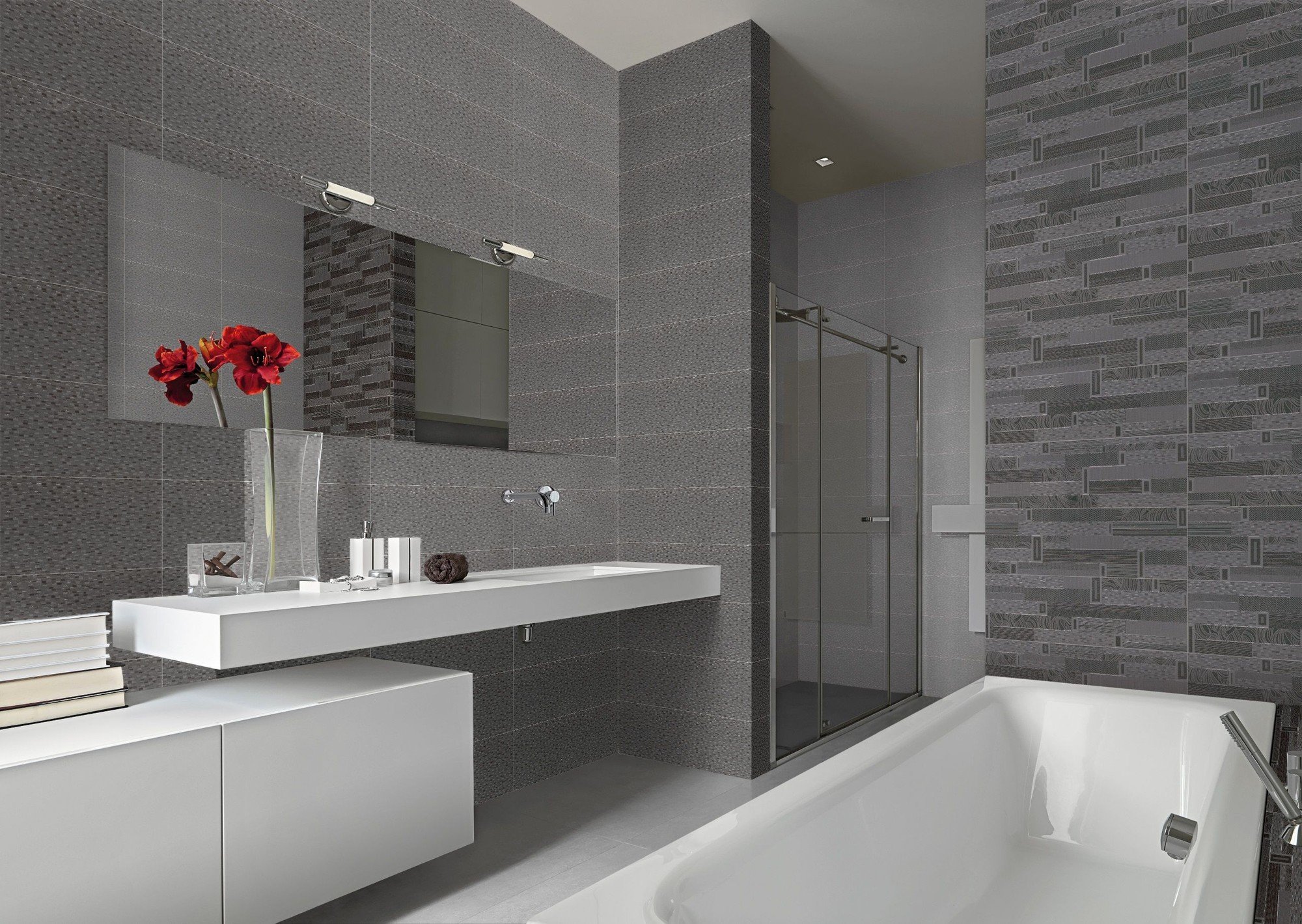 Ванна комната серая плитка монохром
