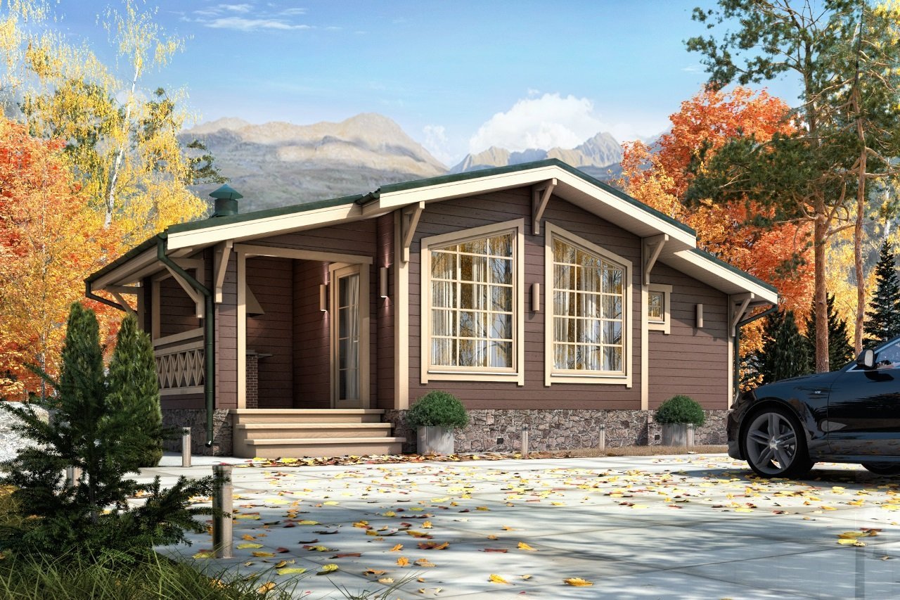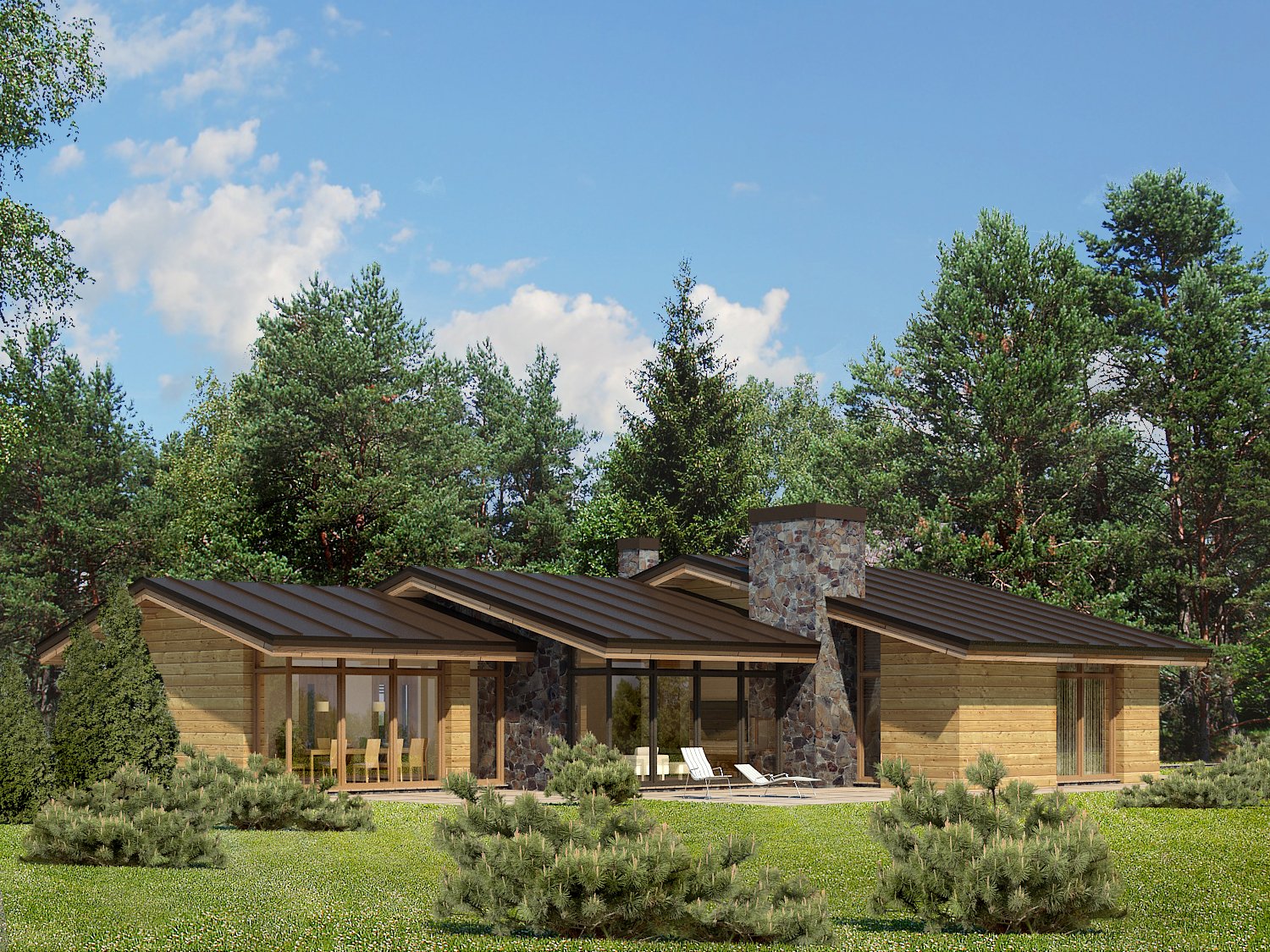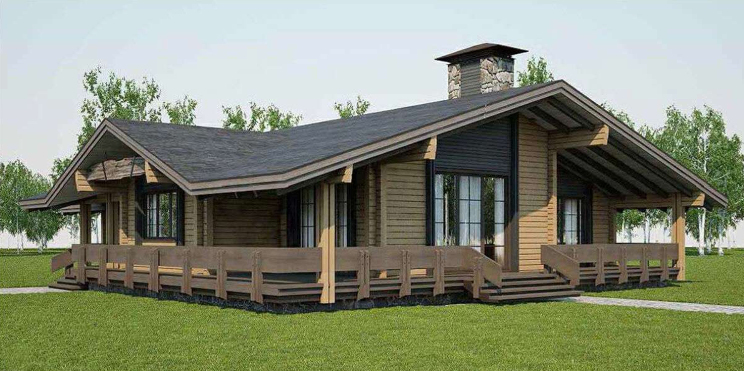 Одноэтажный дом Шале из клееного бруса 100 кв м