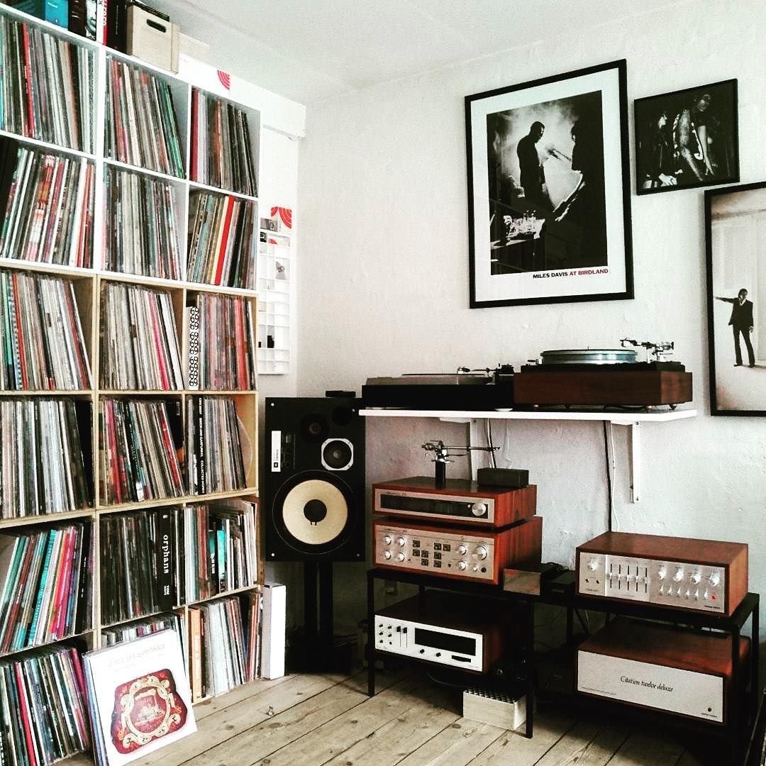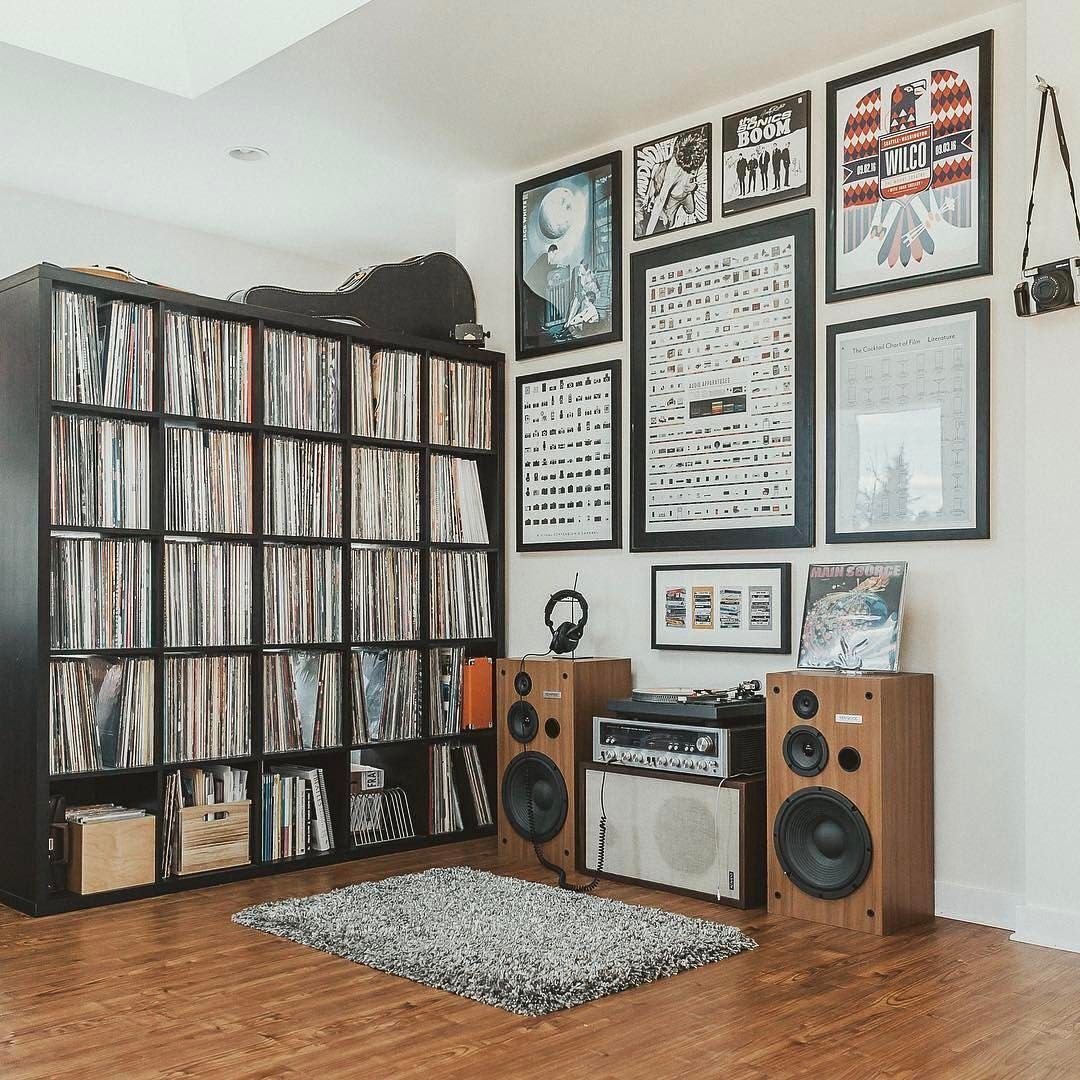 Комната с проигрывателем виниловых пластинок
