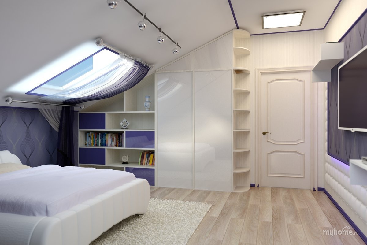 Планировки спальня с гардеробом в мансарде