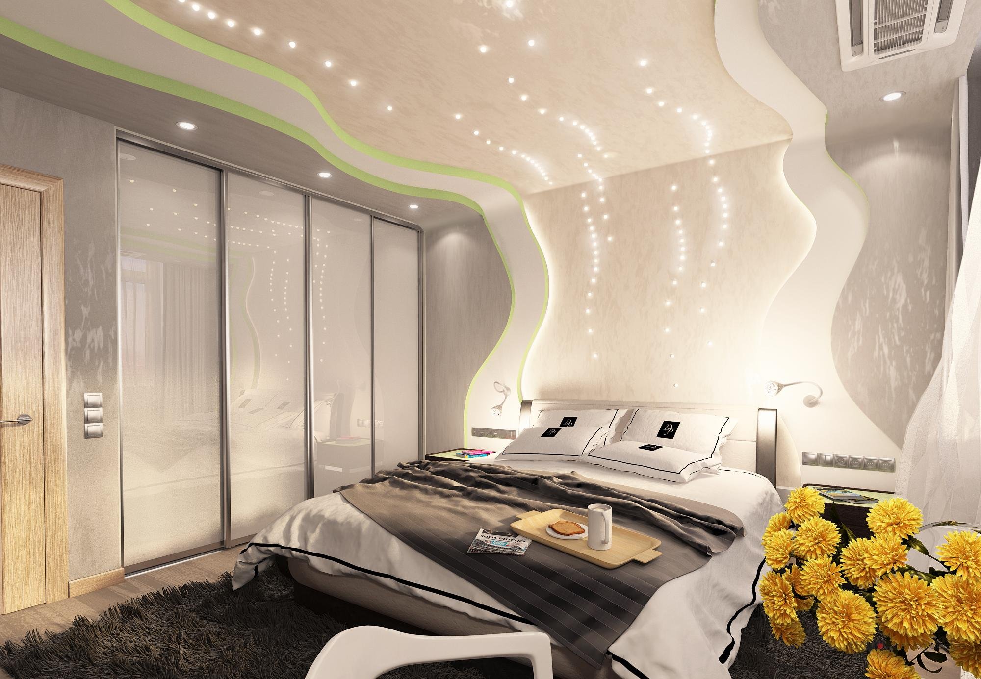 Натяжные потолки в спальной