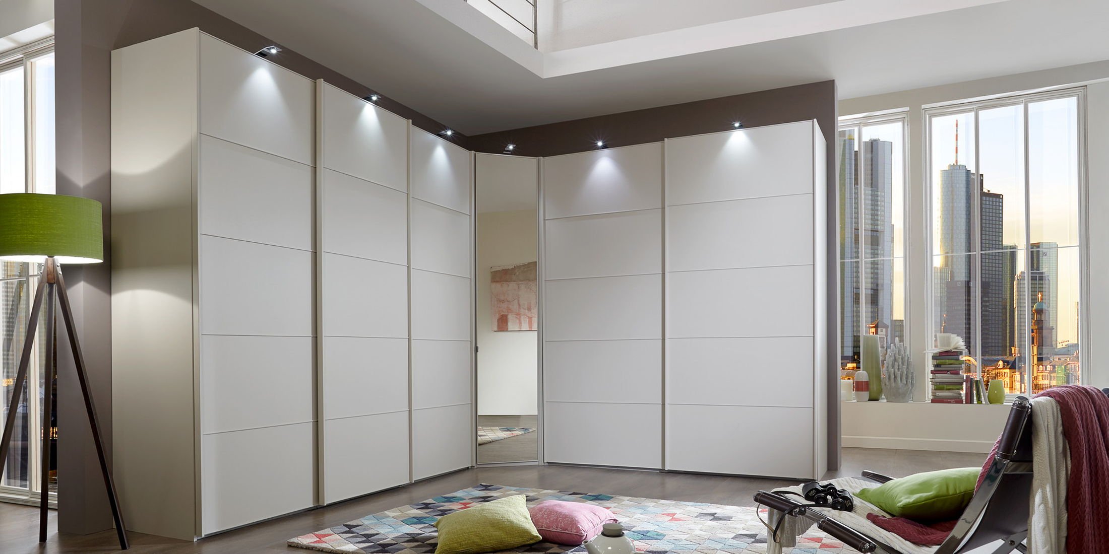Угловой шкаф купе в потолок в комнате