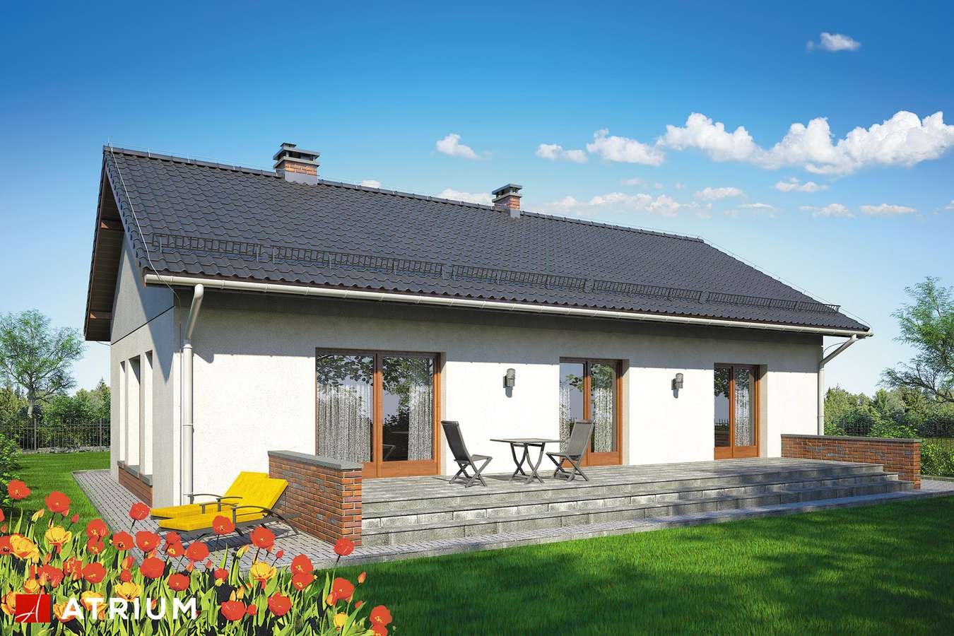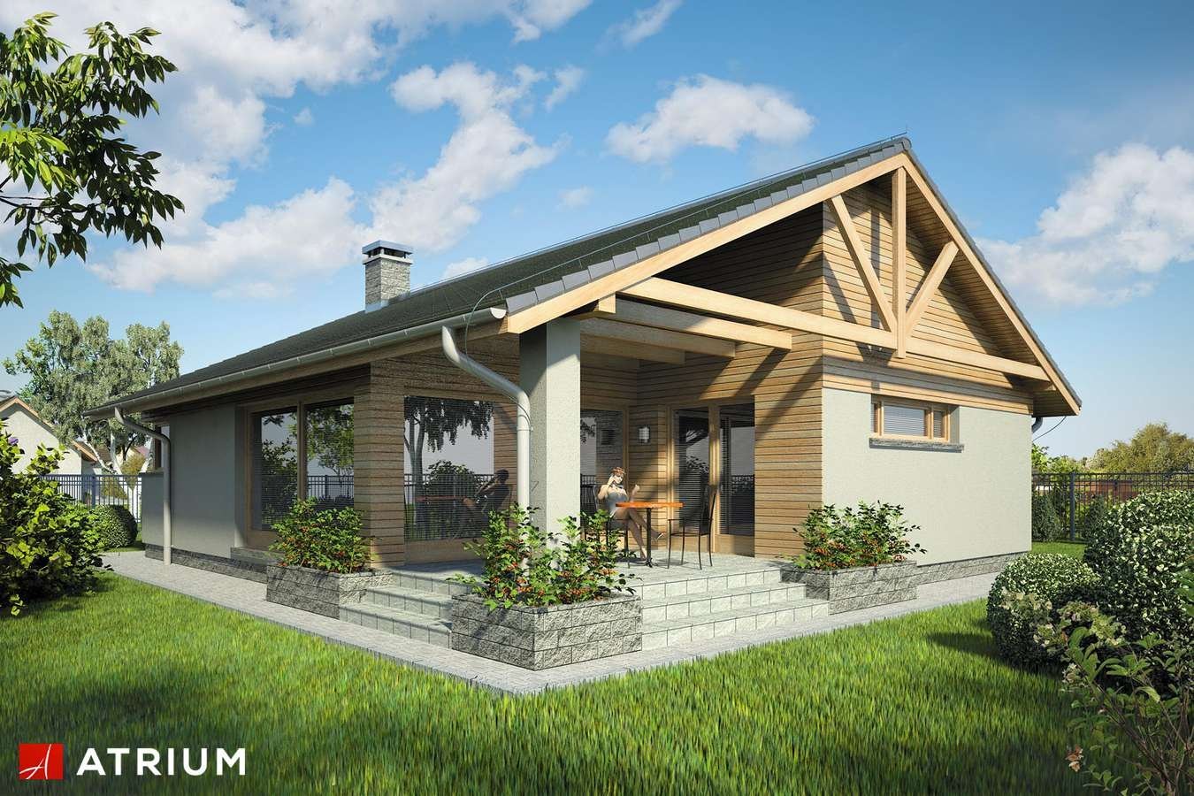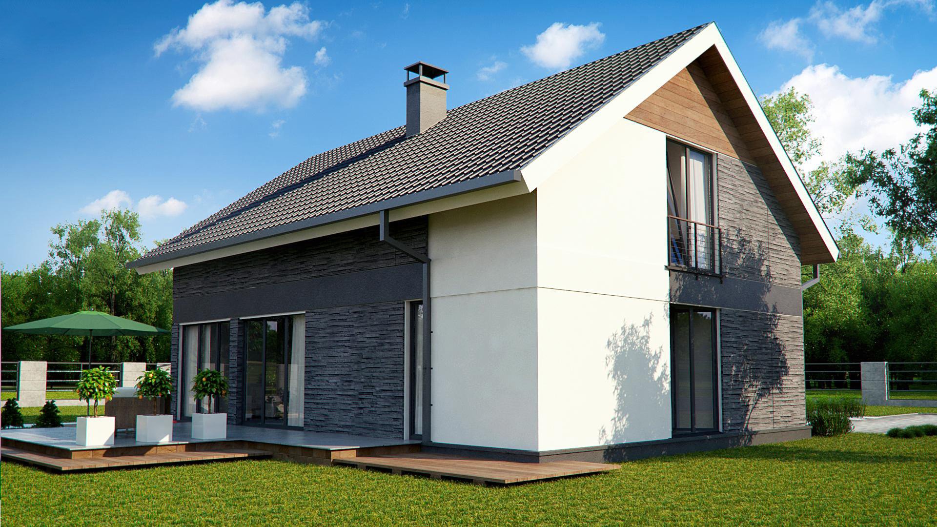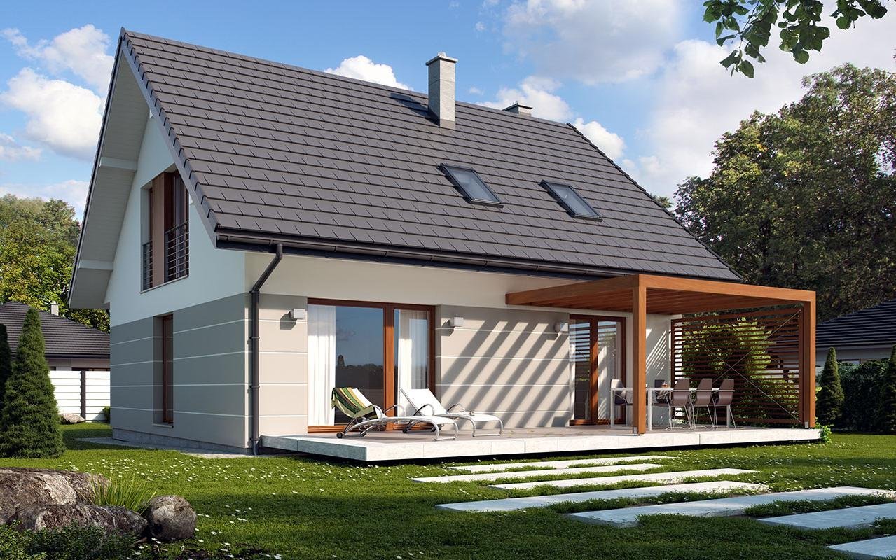 Дом с двускатной крышей и террасой