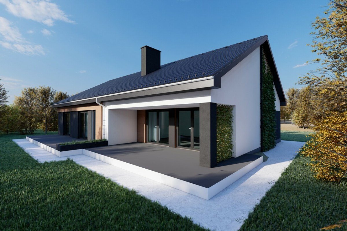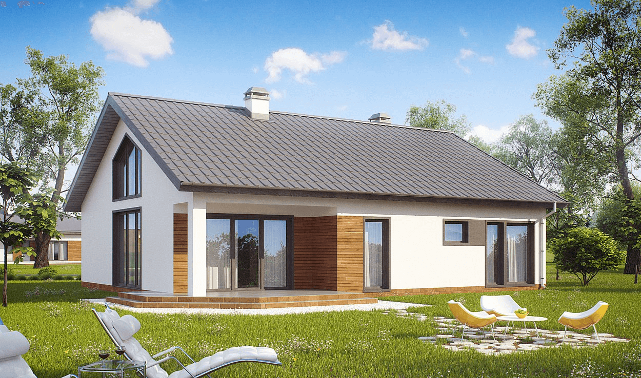Одноэтажный дом с двухскатной крышей экстерьер
