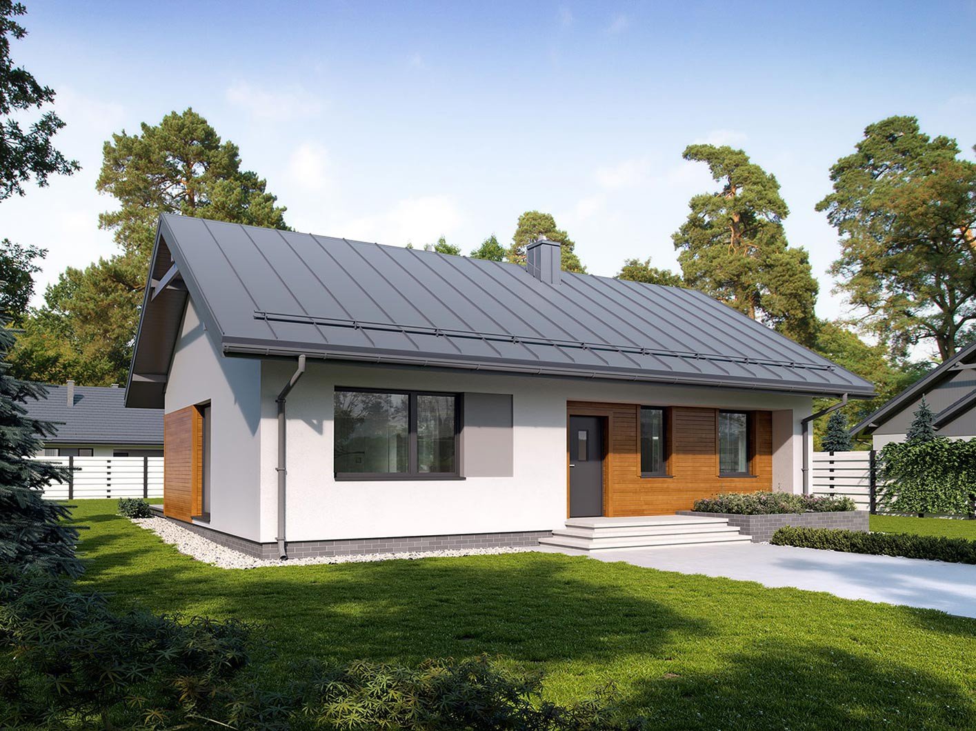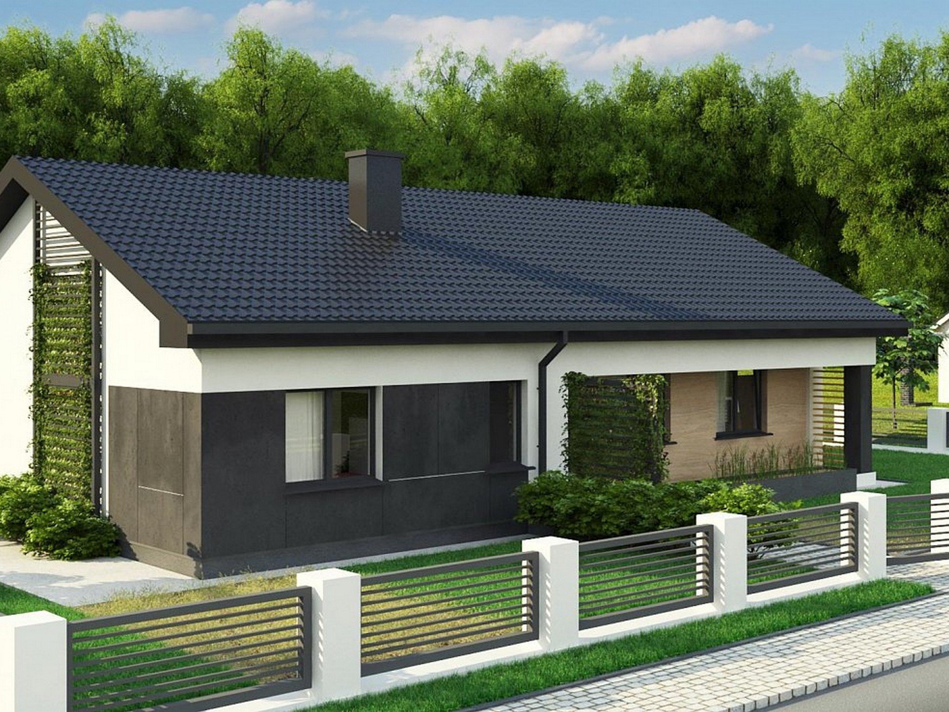 Фасады одноэтажных домов с двухскатной крышей