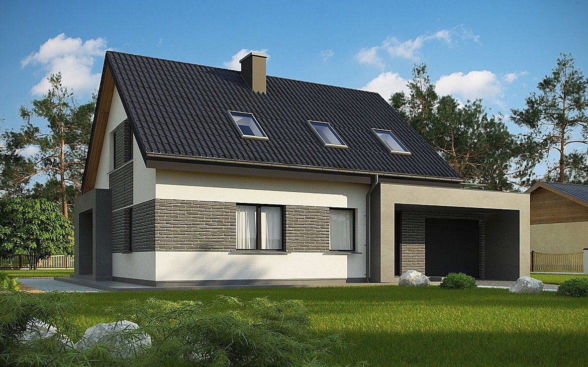 Дом с двухскатной крышей и гаражом
