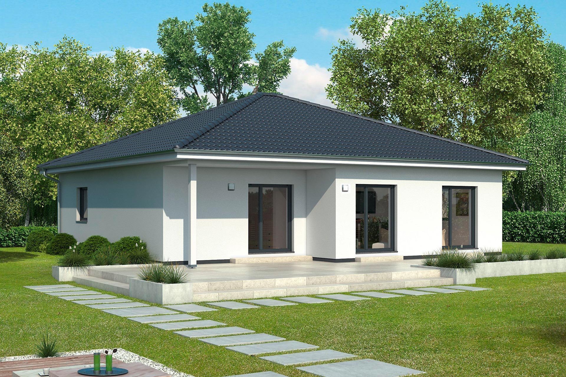 Одноэтажные дома с панорамными окнами