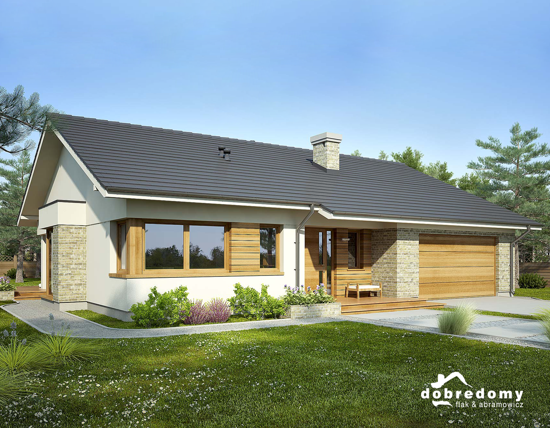 Одноэтажный дом с гаражом в скандинавском стиле