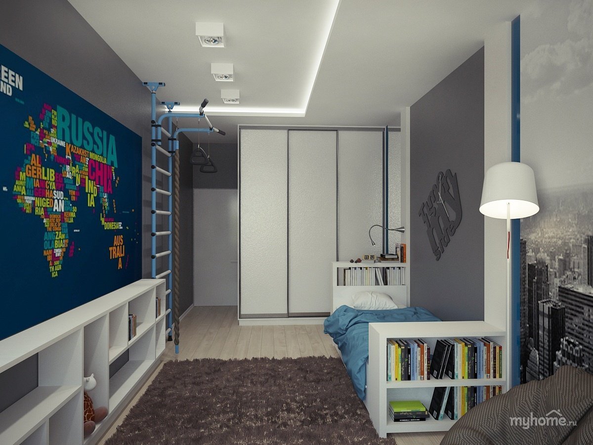 Узкая комната для подростка мальчика