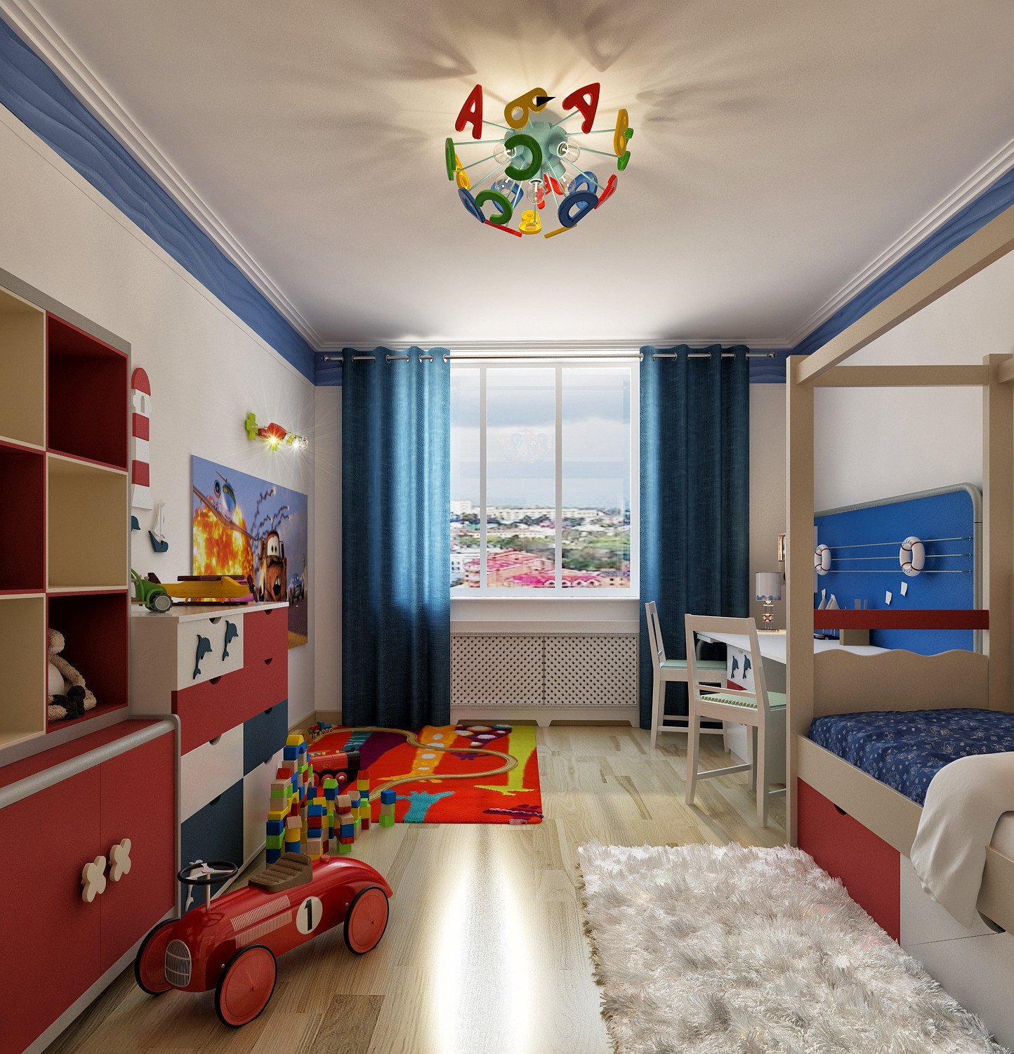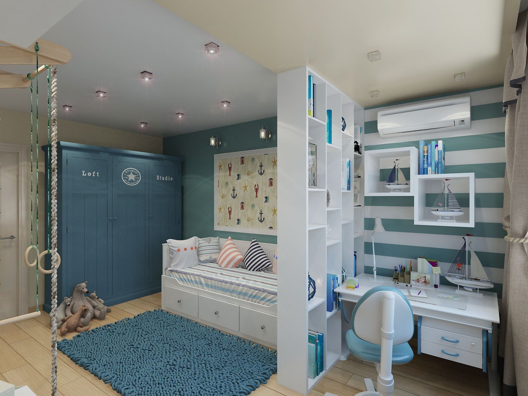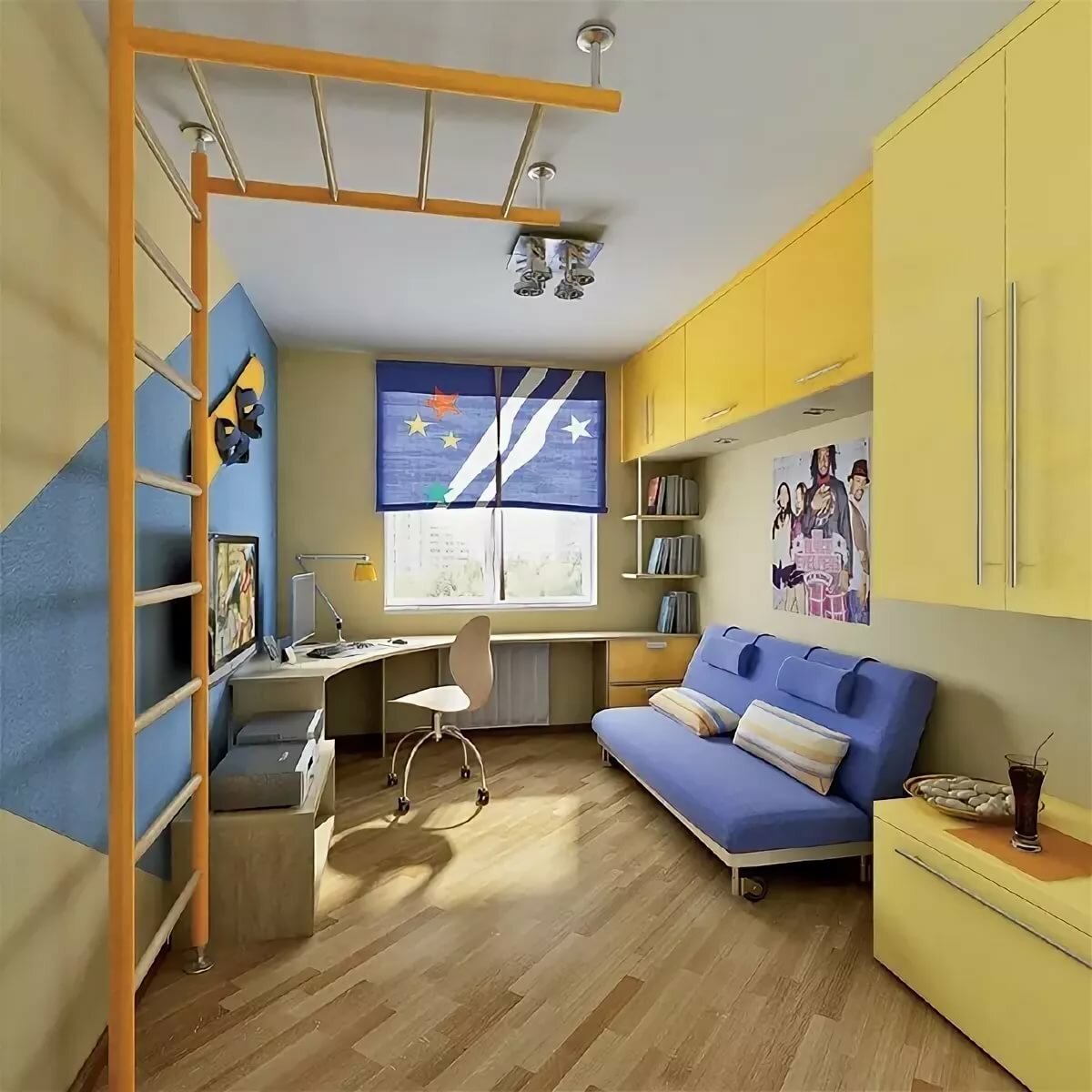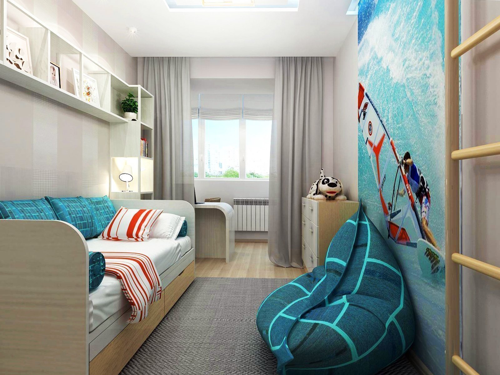 Интерьер квадратной комнаты для мальчика