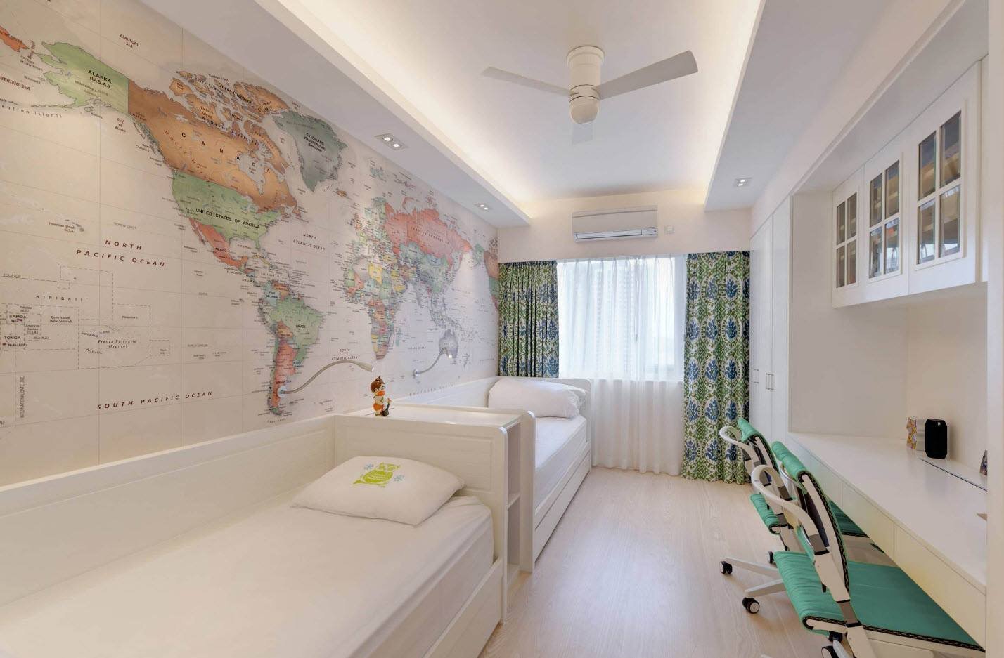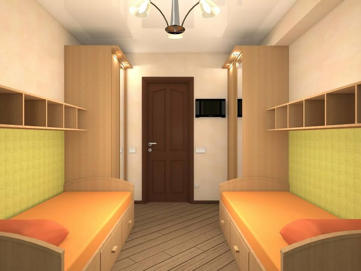 Узкая детская комната для двоих детей