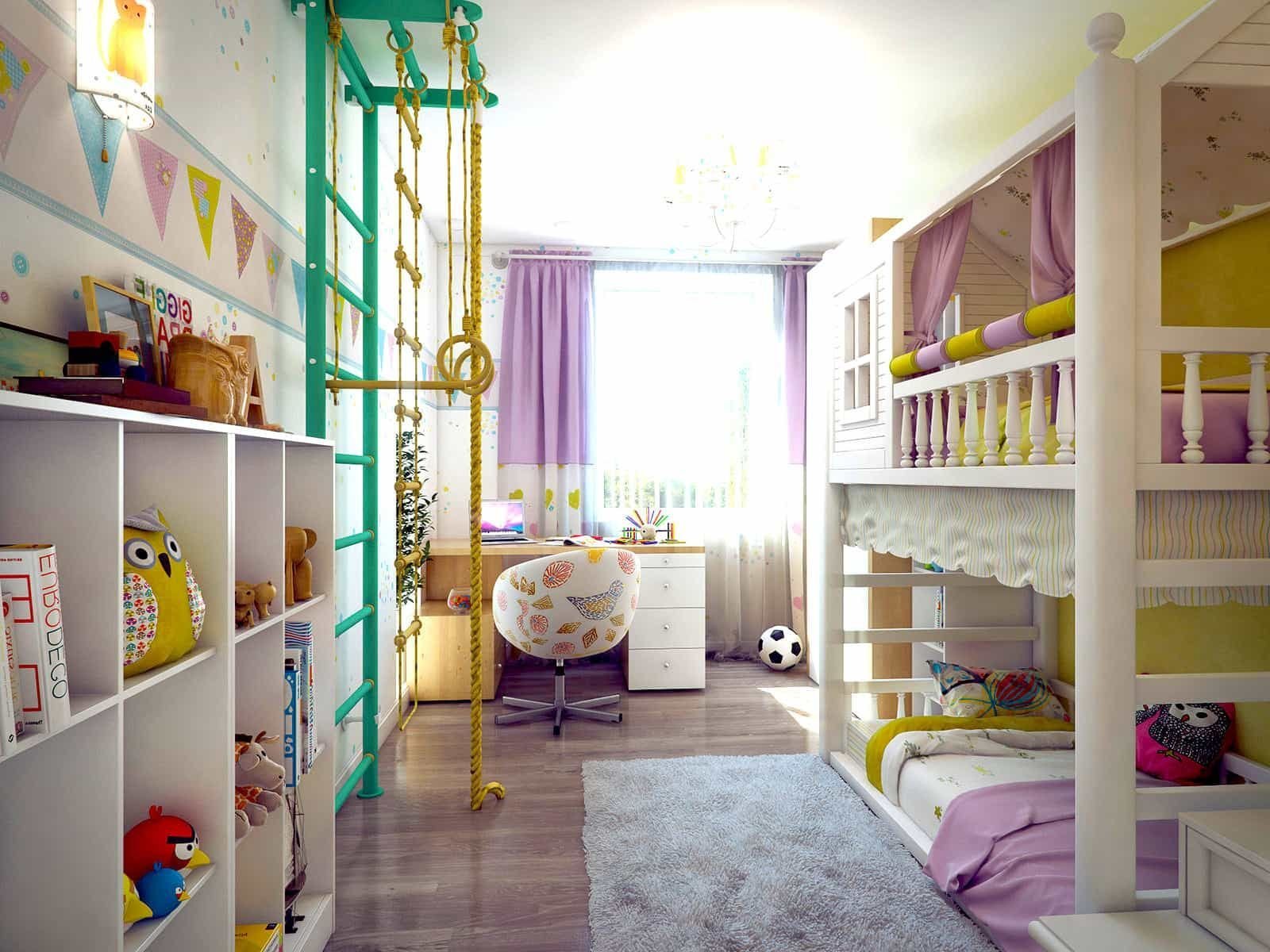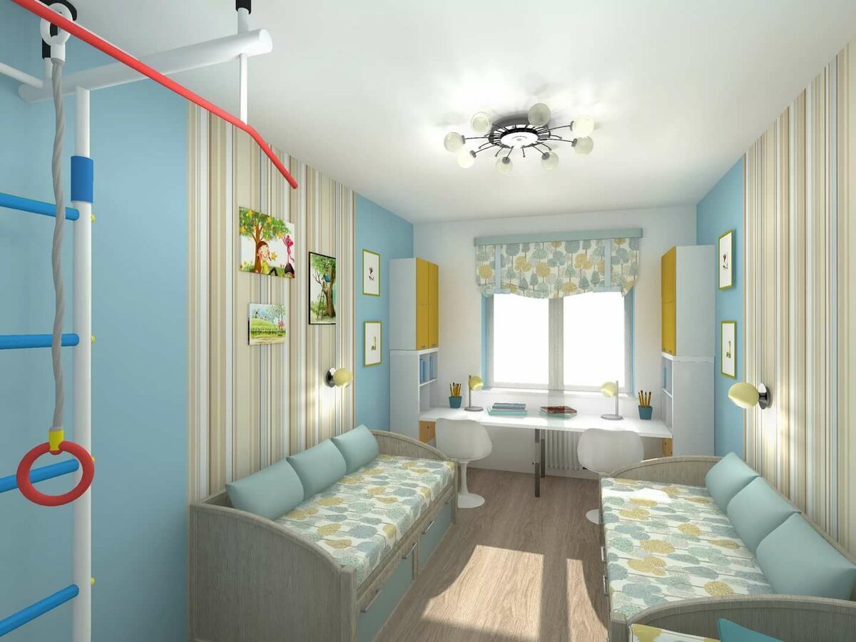 Интерьер детской для двоих детей 12 кв м
