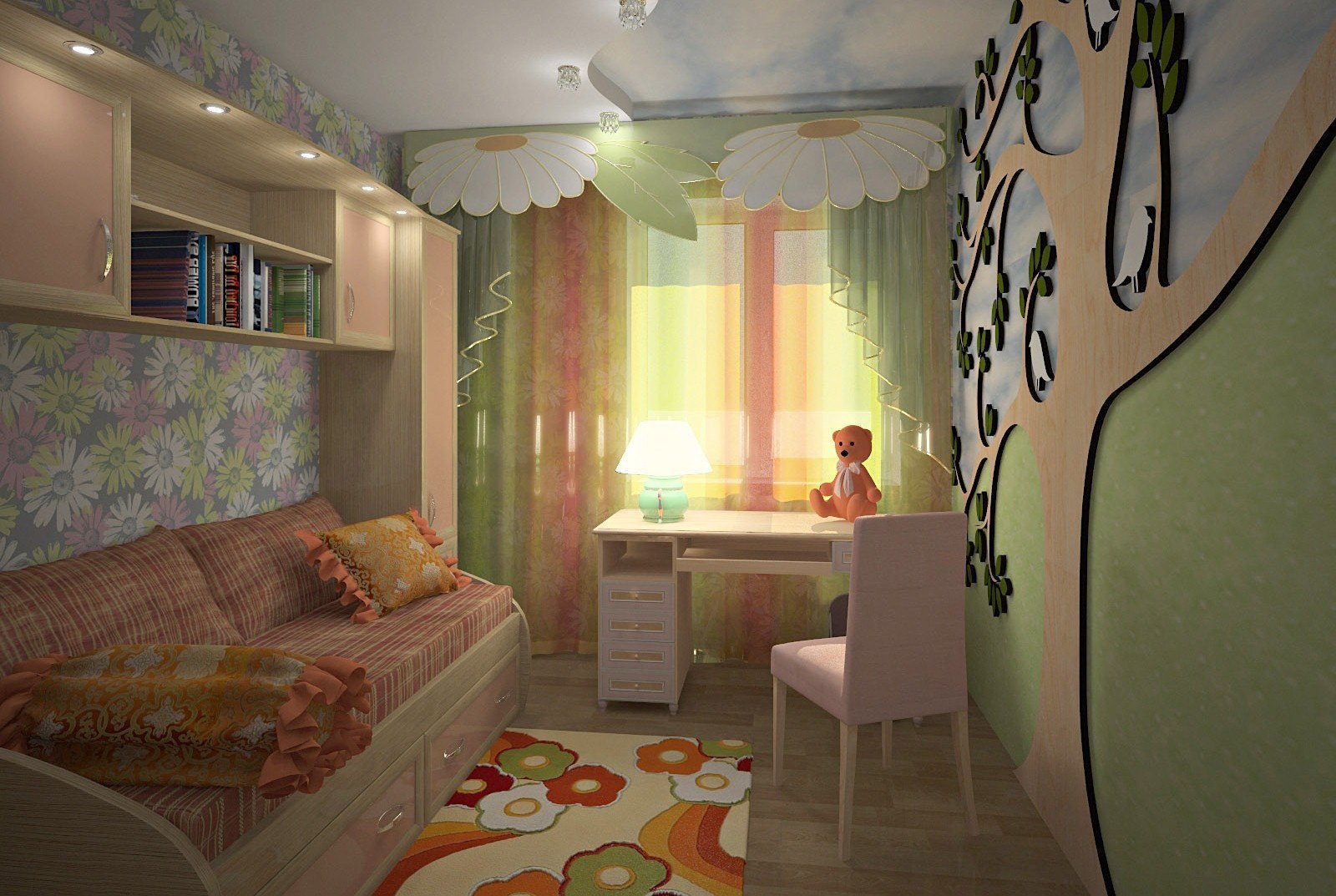 Узкая комната для подростка девочки