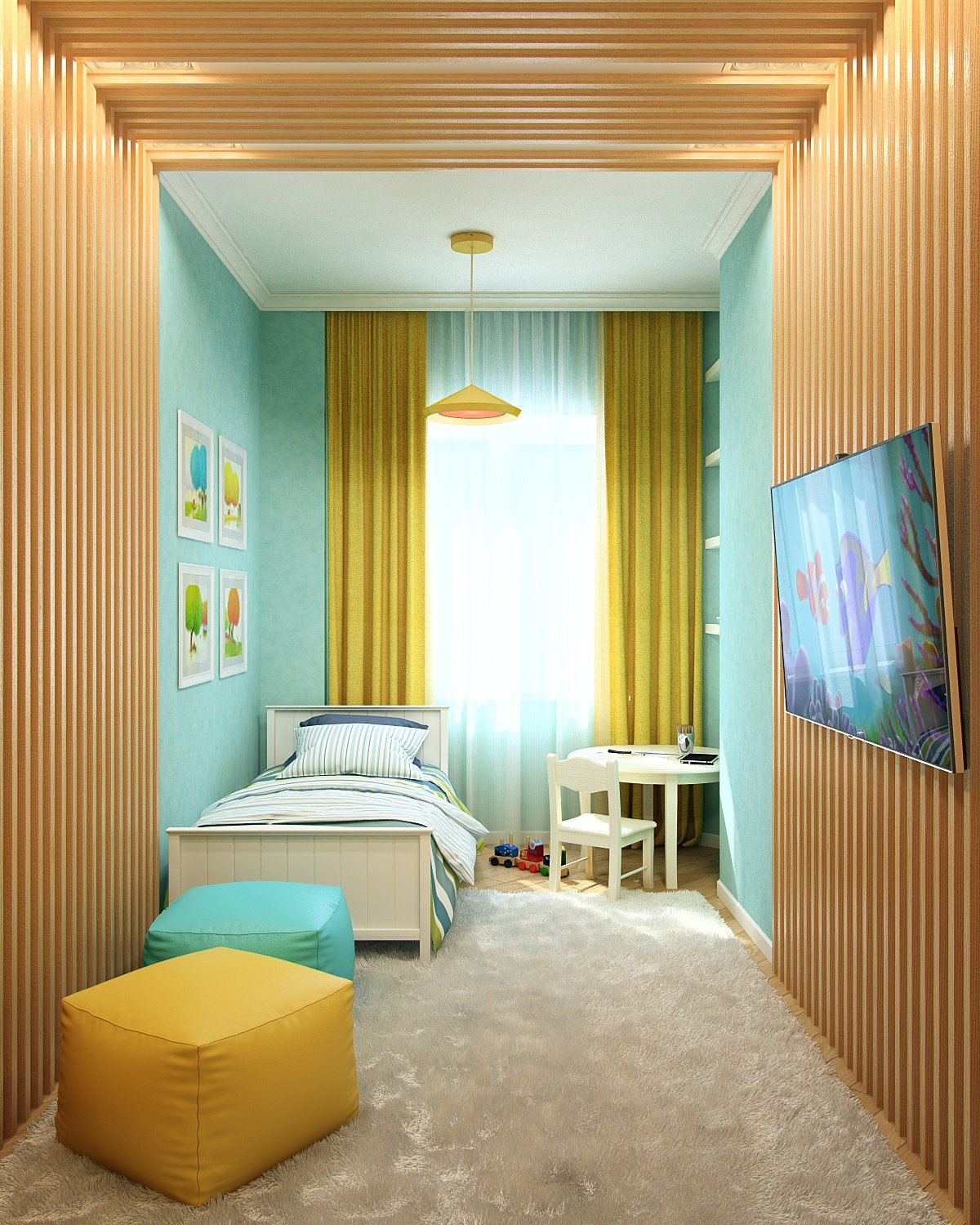 Интерьер детской прямоугольной комнаты