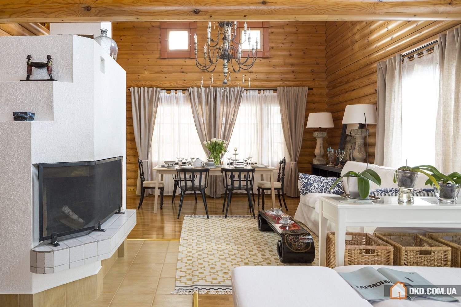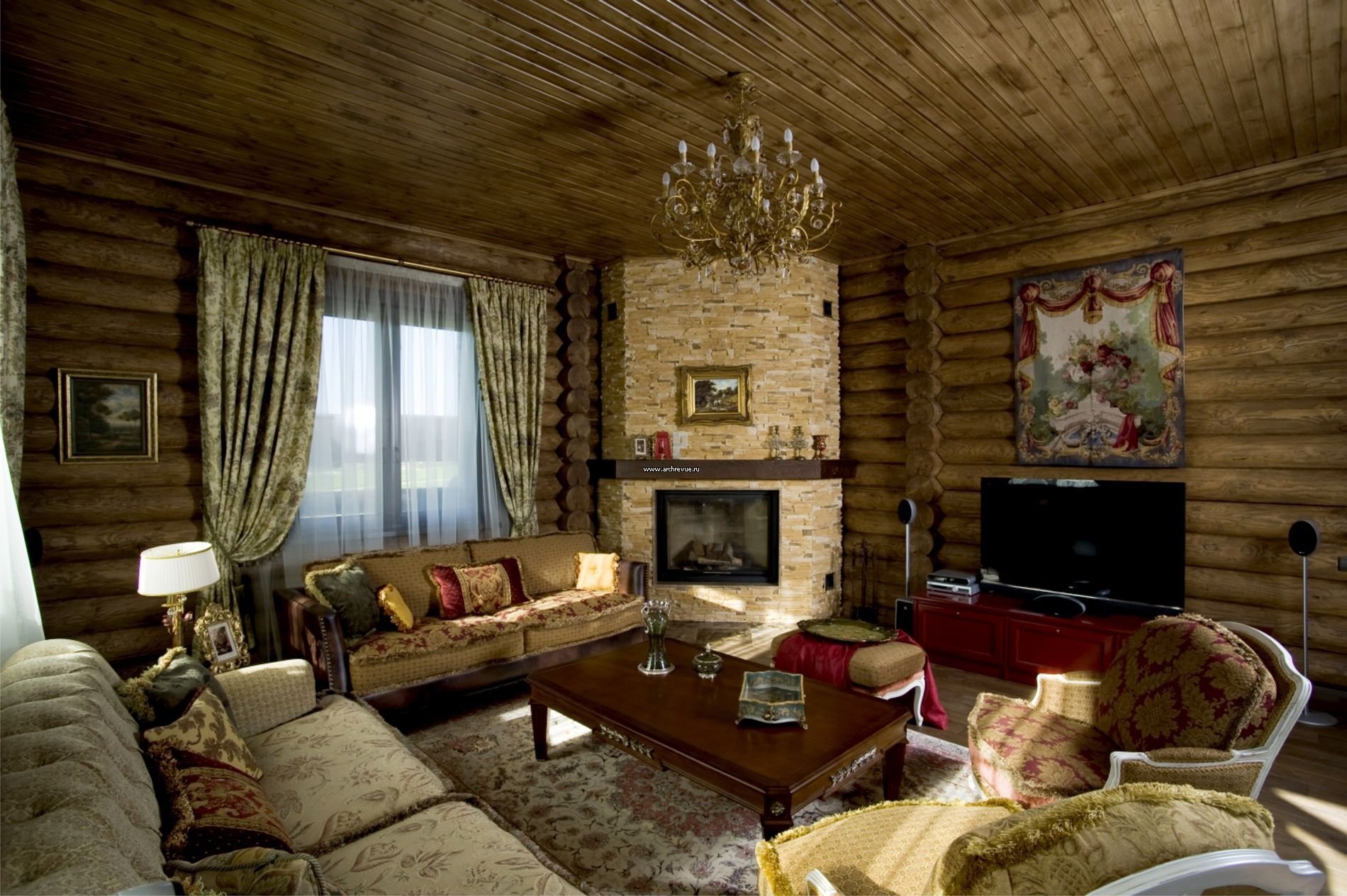 Гостиная Прованс Кантри в бревенчатом доме