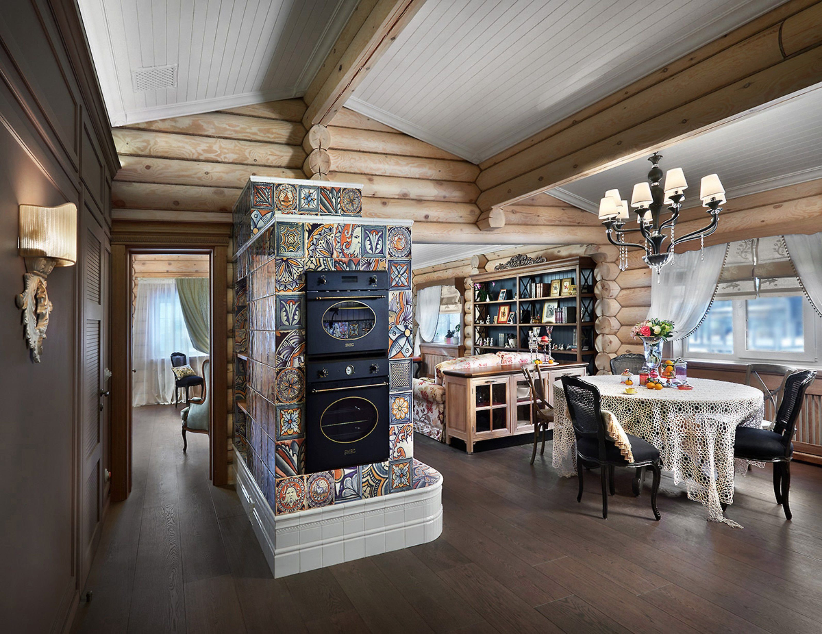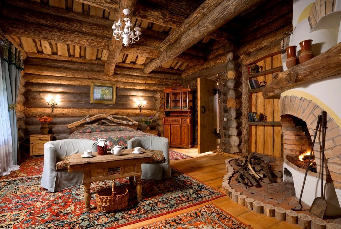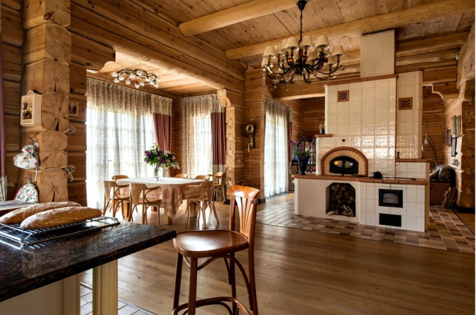 Интерьер деревянного дома с печкой
