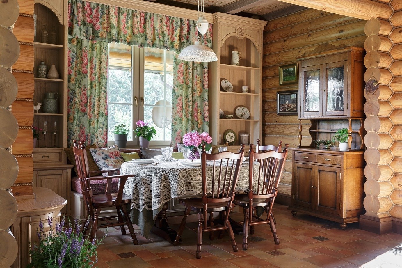 Кухни в стиле Прованс в срубовом доме