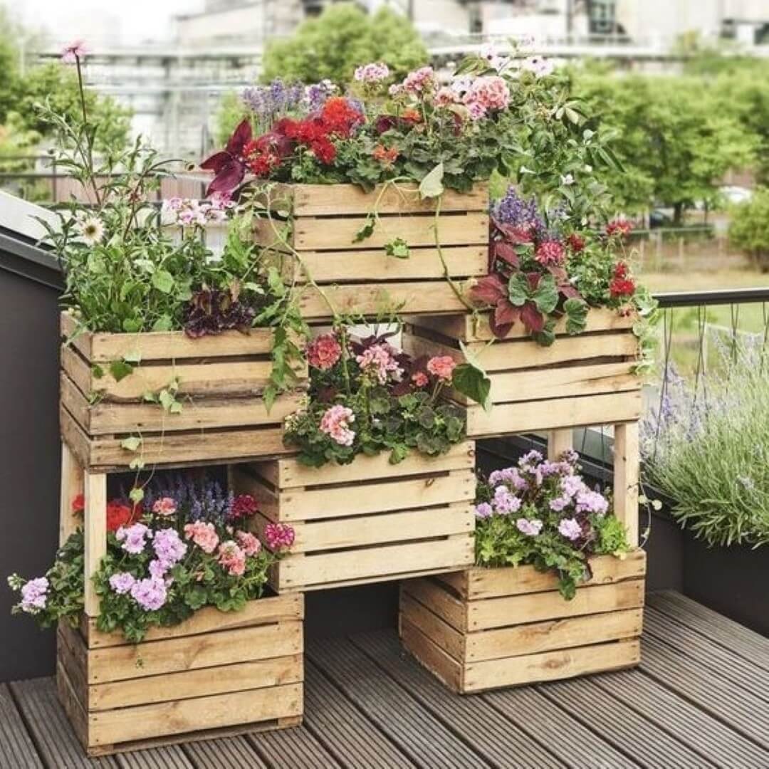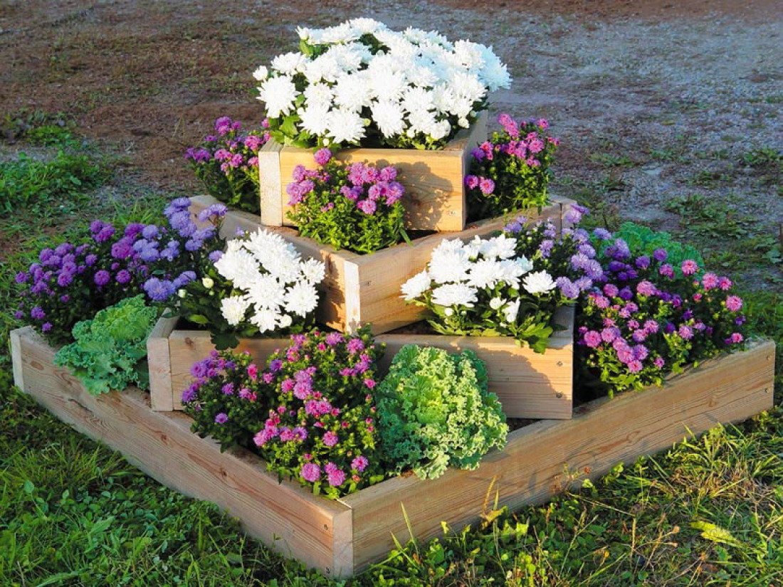 Клумбы из ящиков деревянных