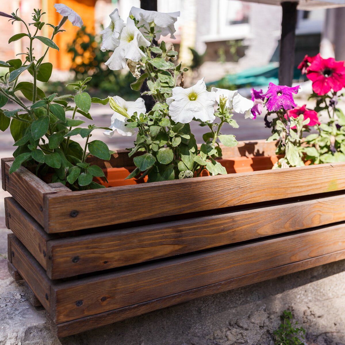 Клумба в ящике деревянном