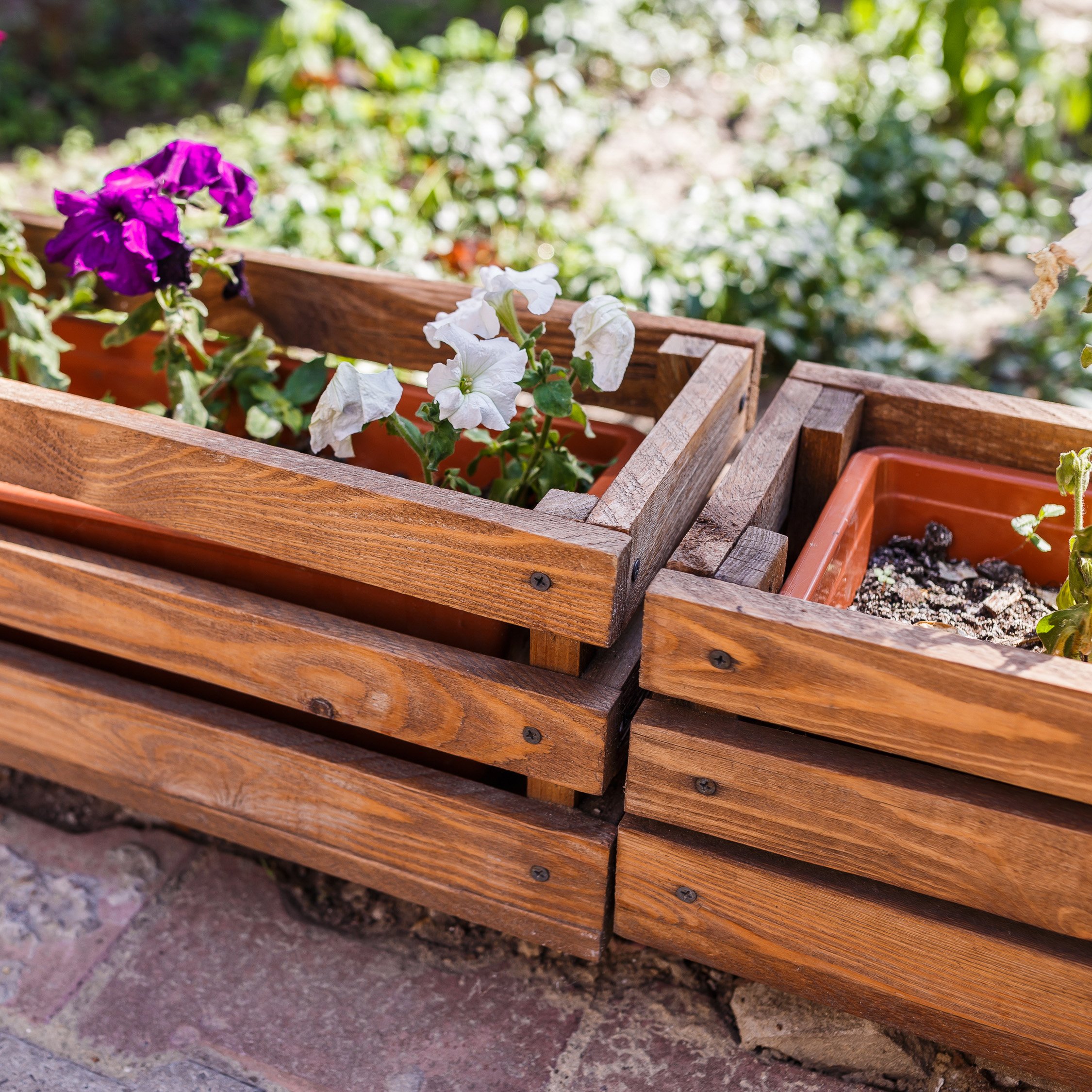Деревянные цветочницы для сада