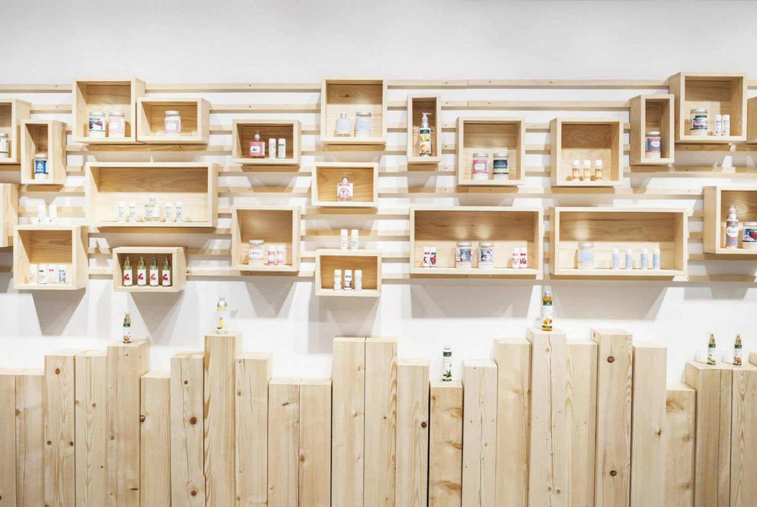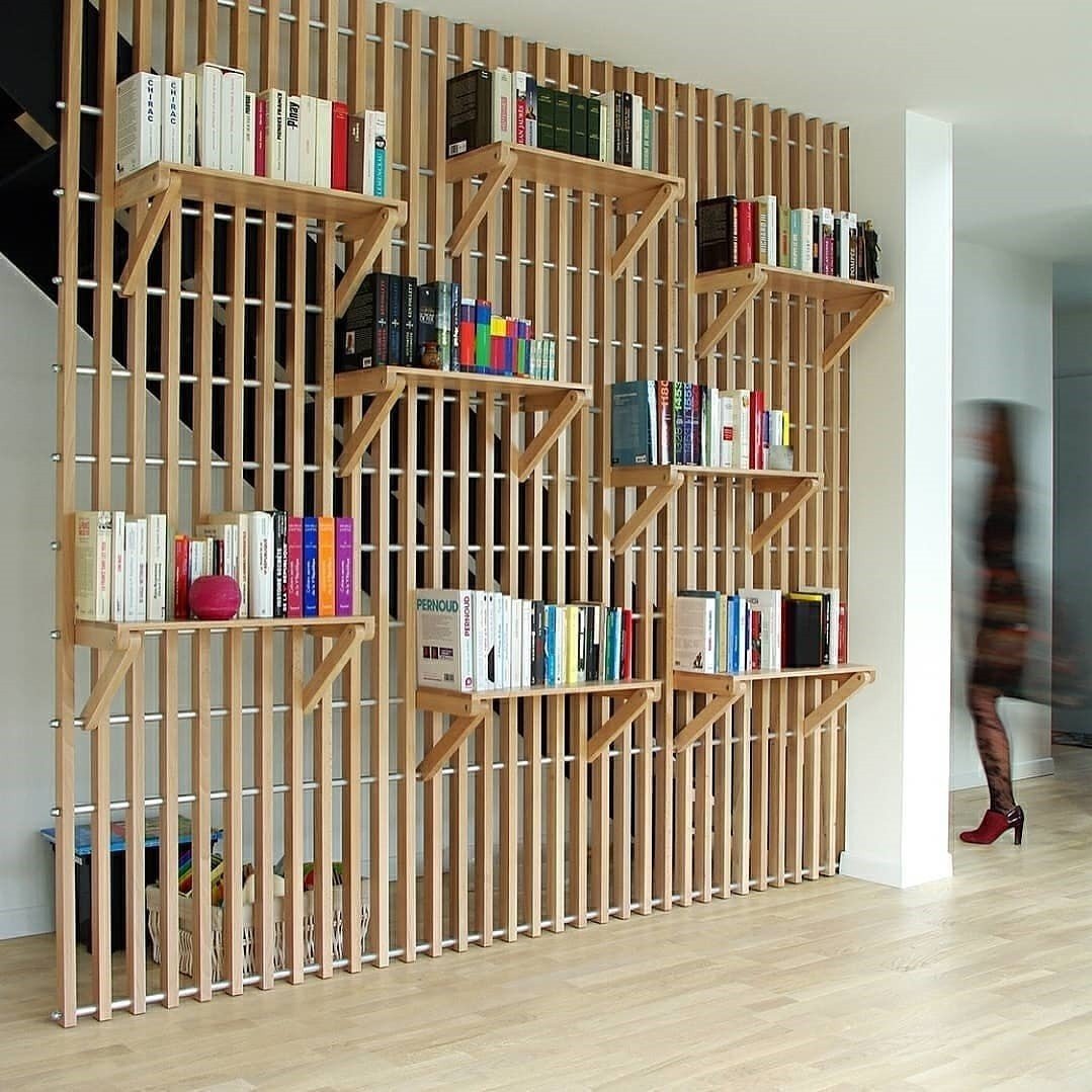 Деревянная перегородка с полочками