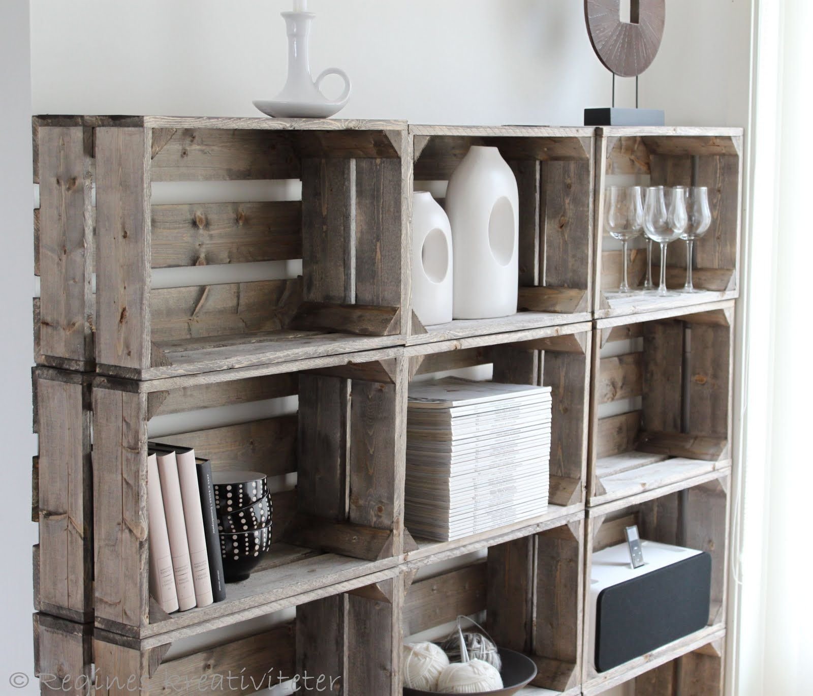 Стеллаж из деревянных ящиков