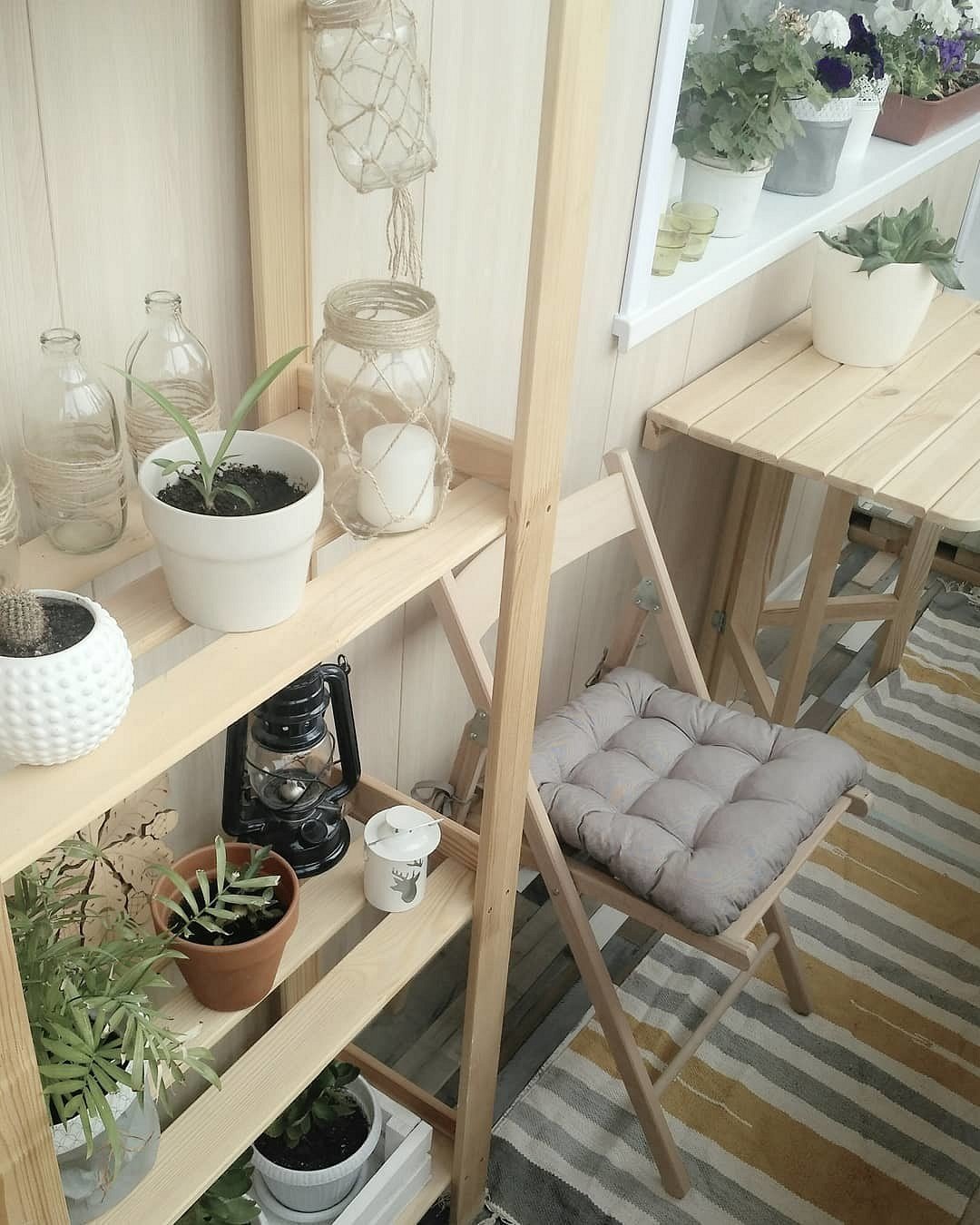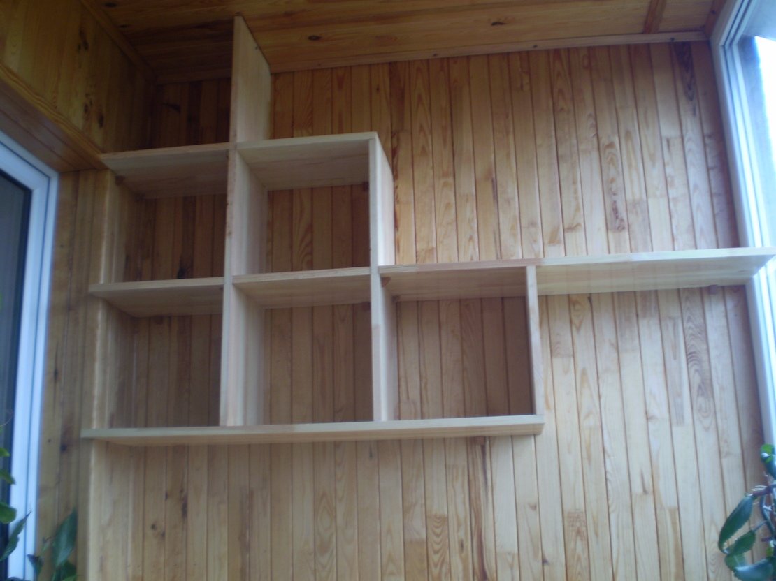 Деревянный стеллаж на балкон