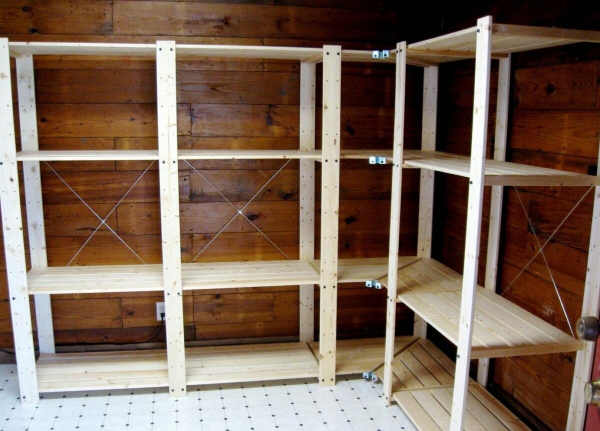 Деревянные стеллажи в подвале