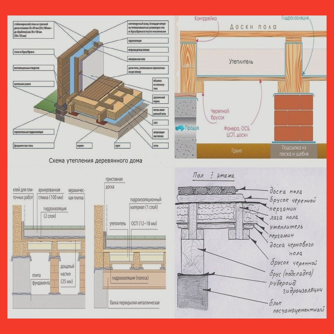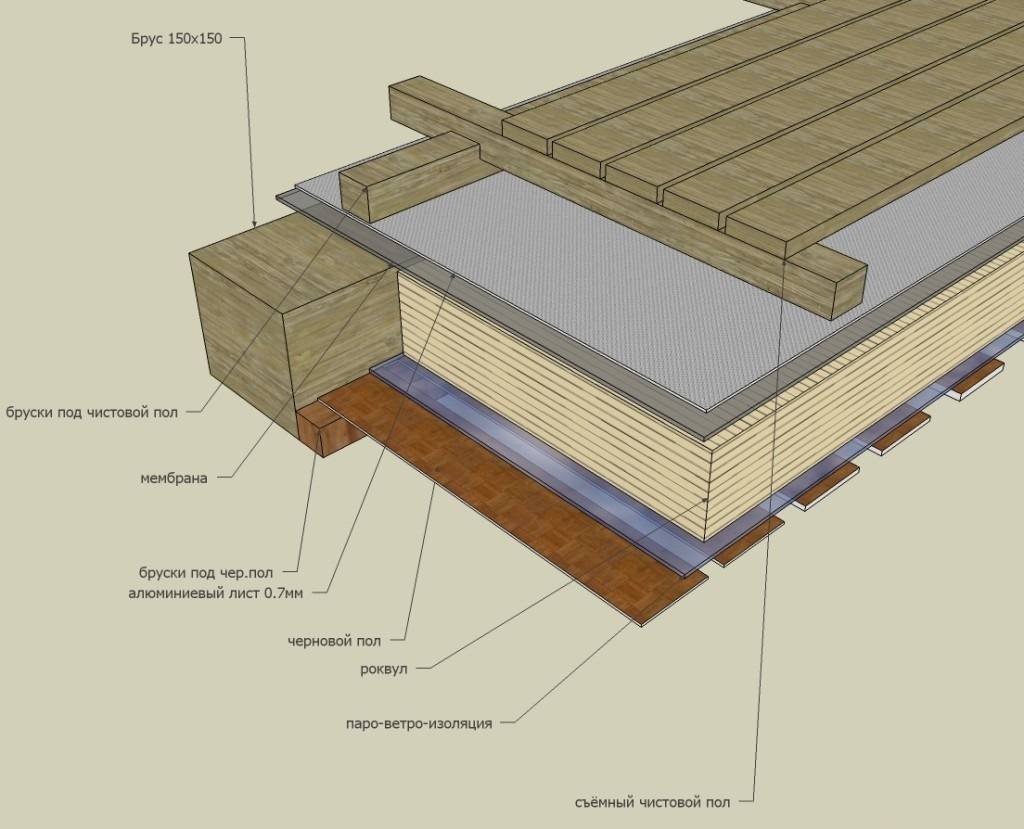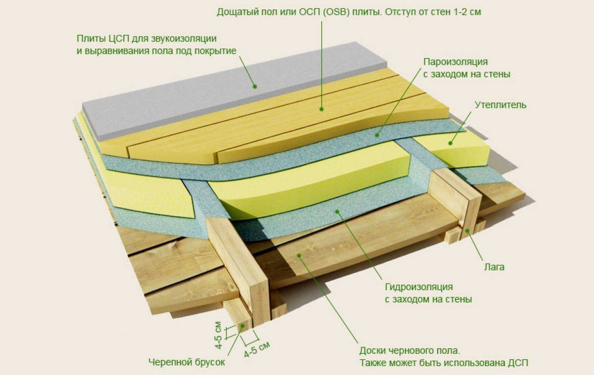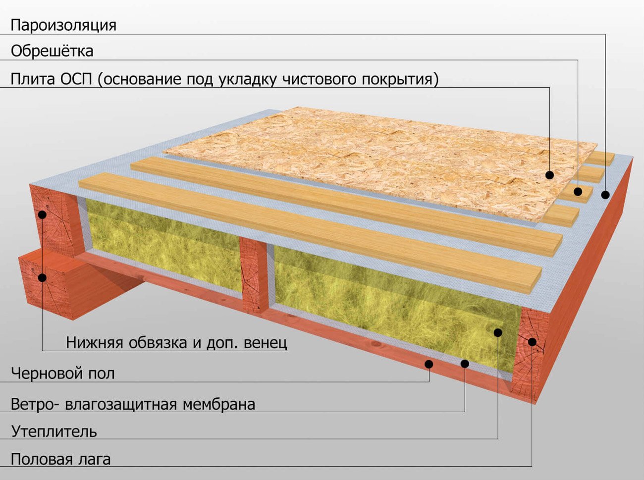 Устройство пола в деревянном доме на лагах с утеплителем схема