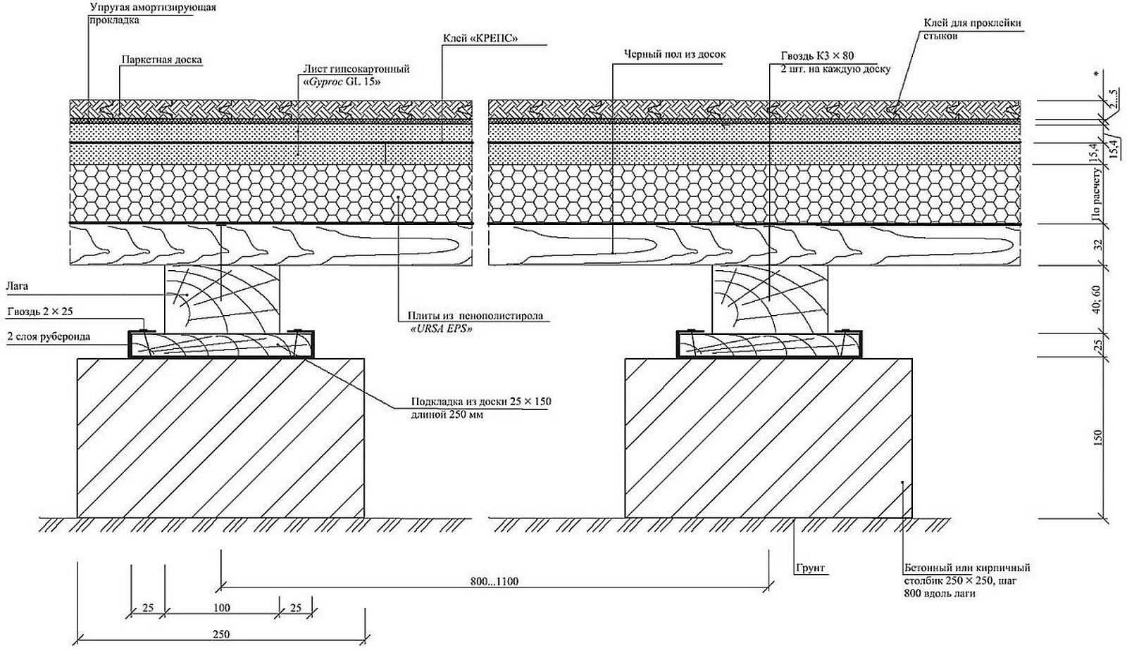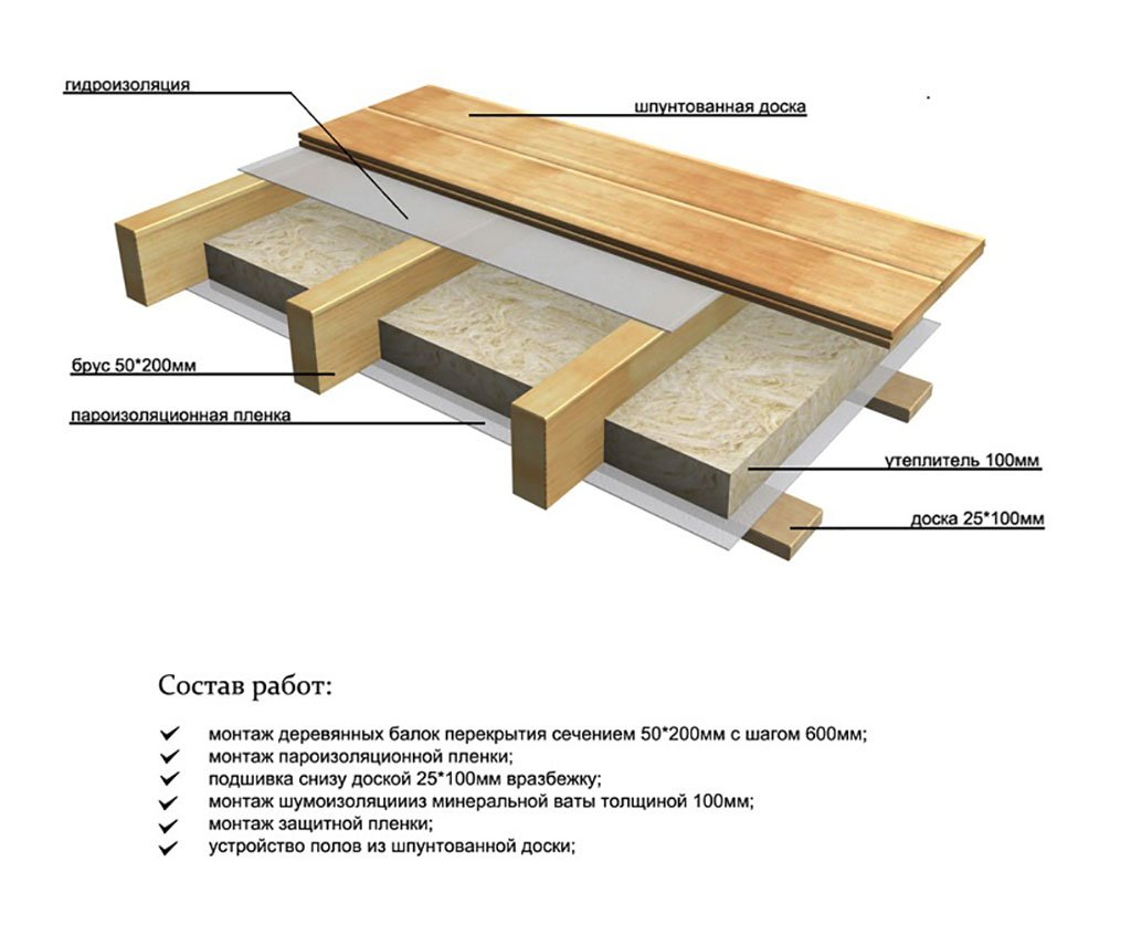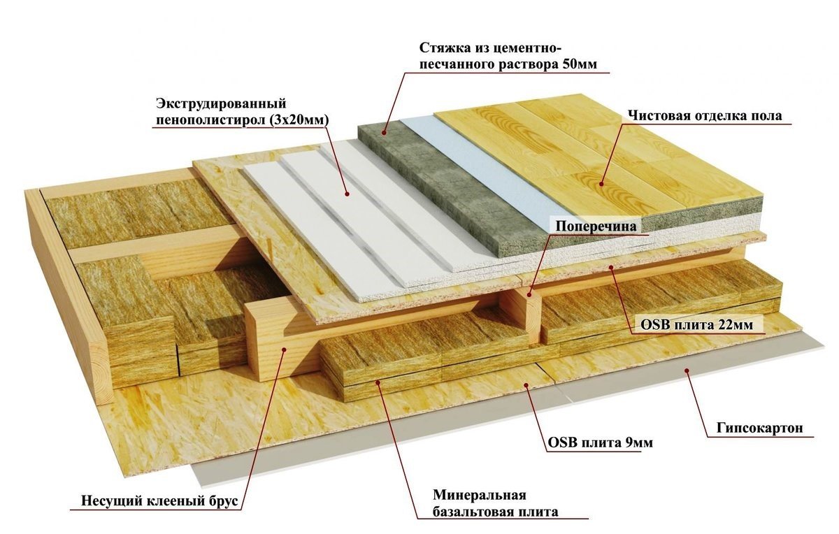 Устройство пола в деревянном доме на лагах с утеплителем схема