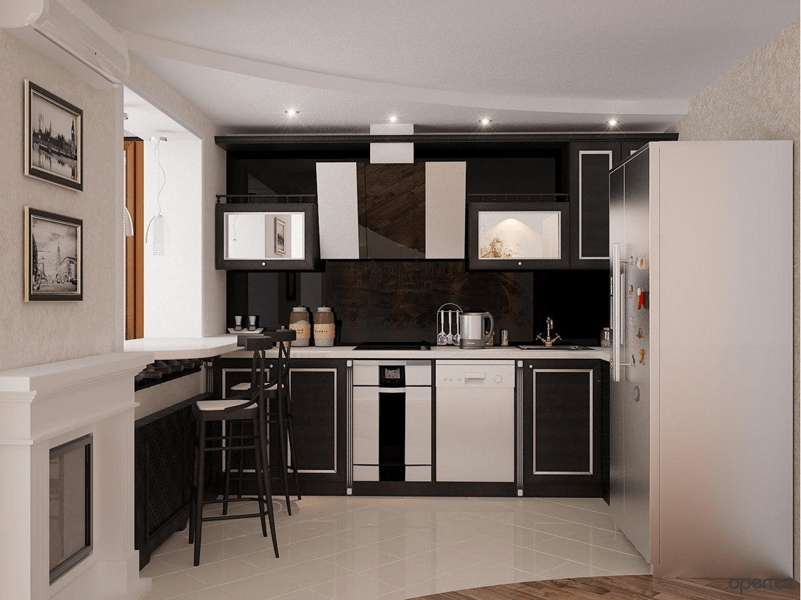 Черно белая кухня 9 кв м