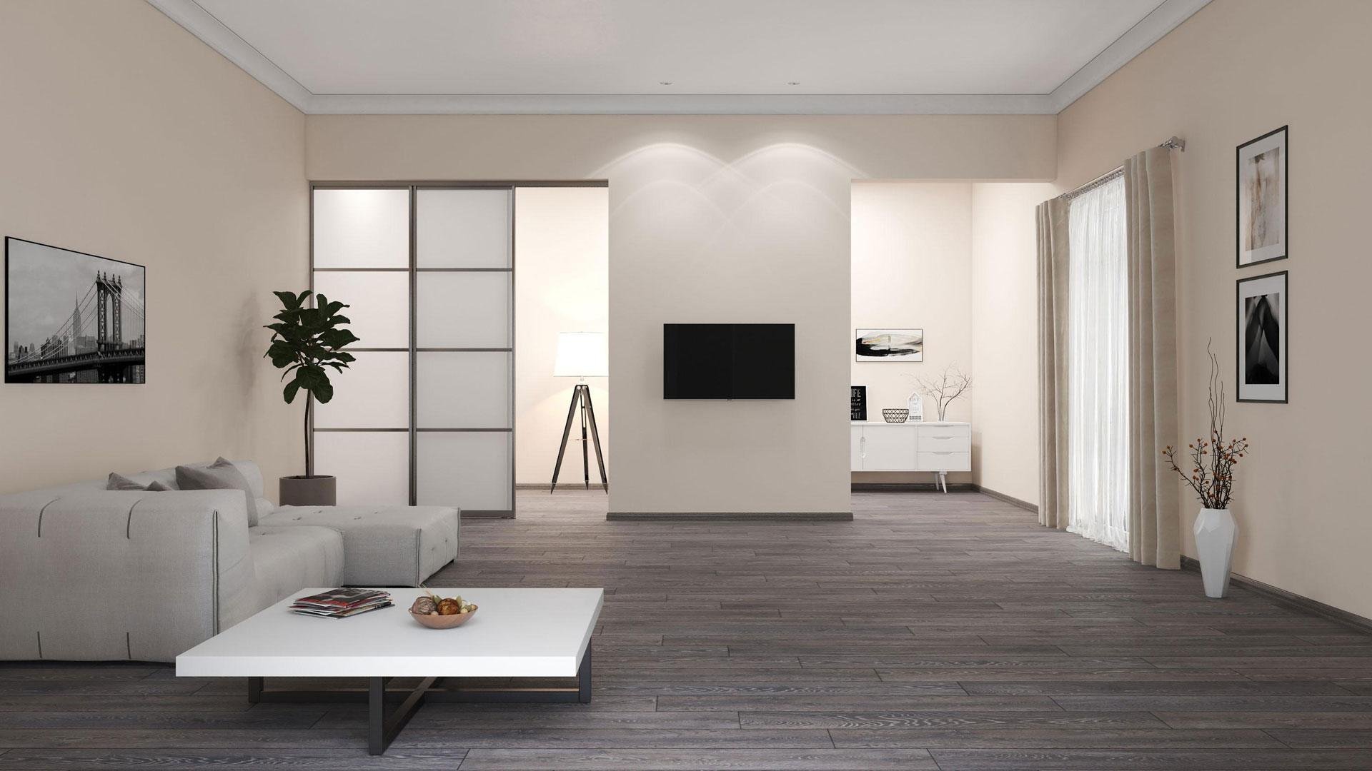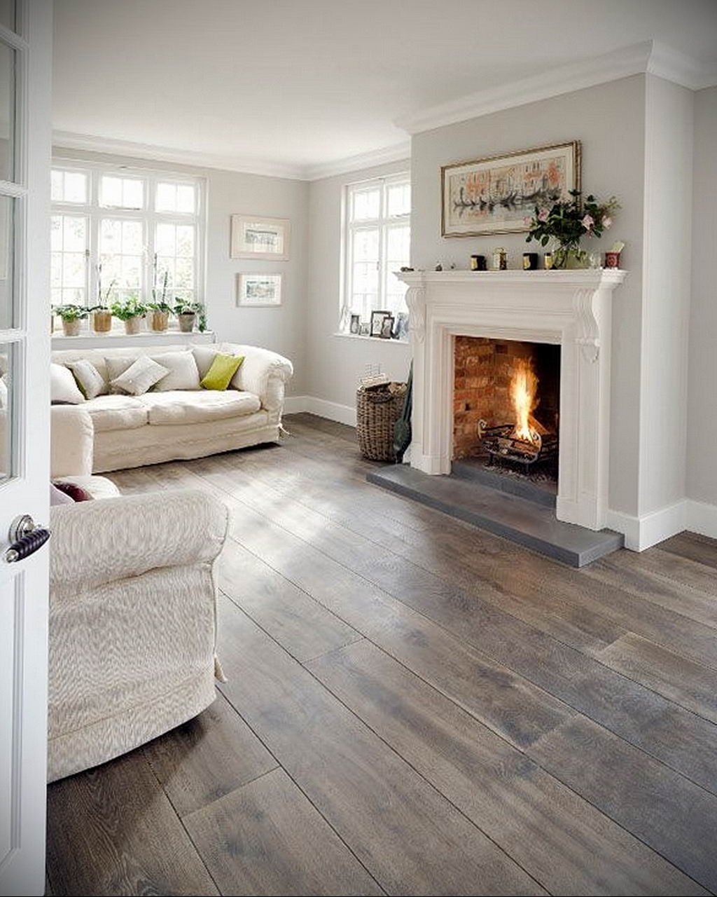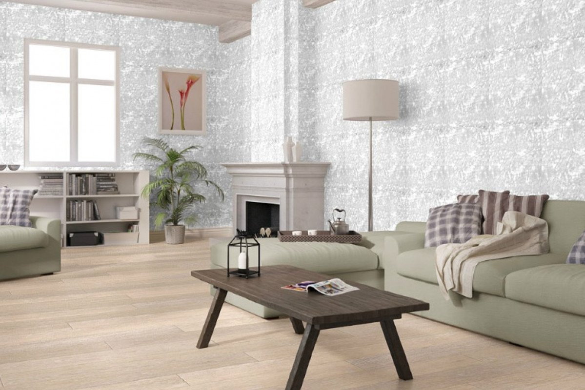 Белый ламинат в гостиной