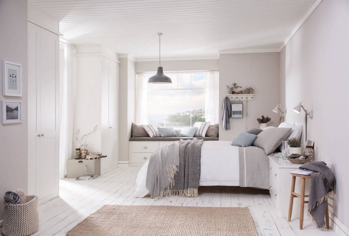 Светлая кровать в интерьере спальни