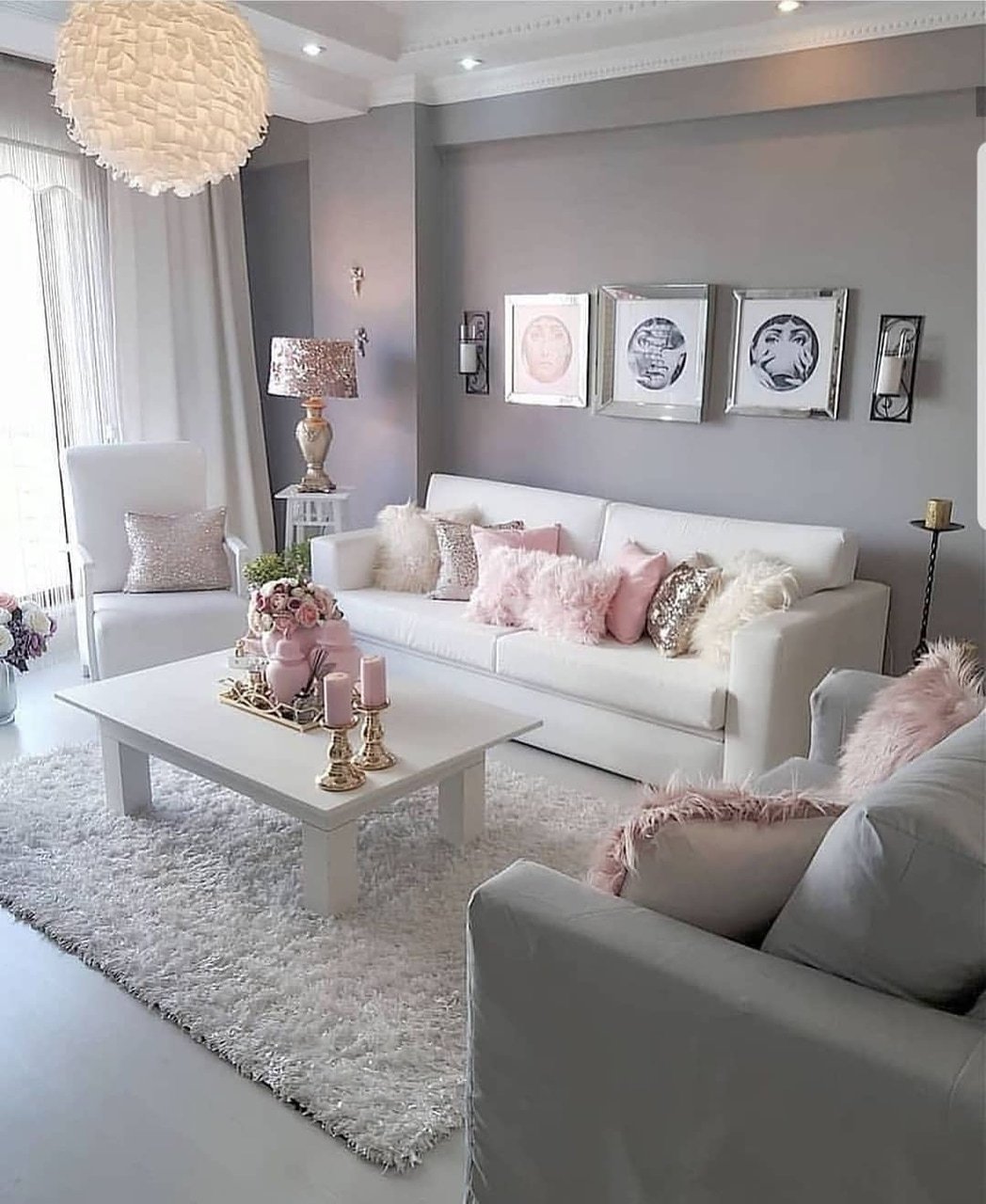 Интерьер в серо розовых тонах