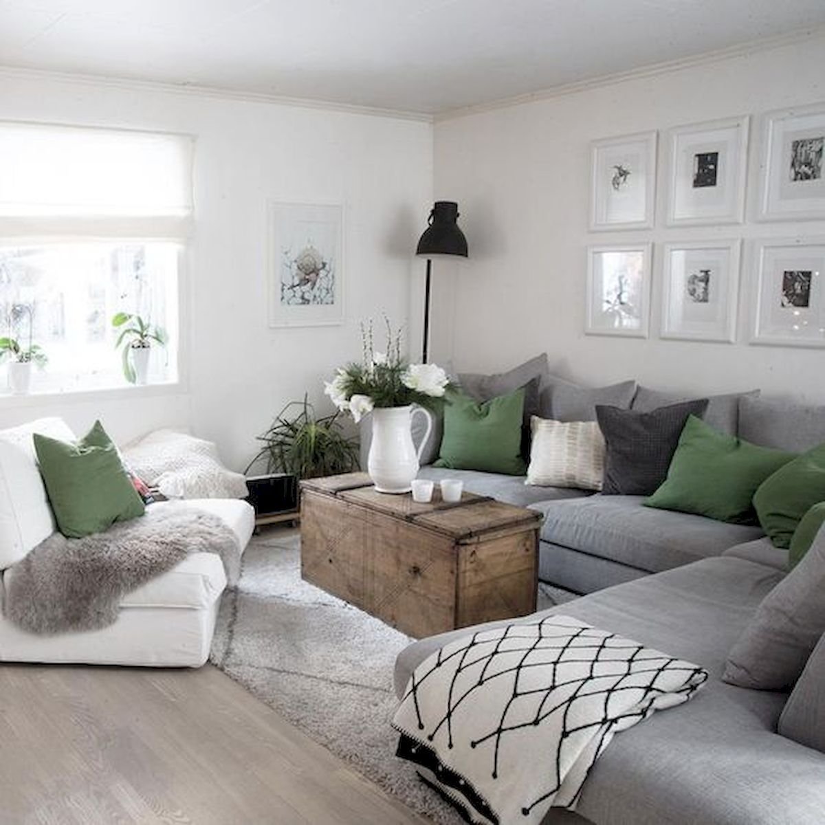 Белые стены серый диван
