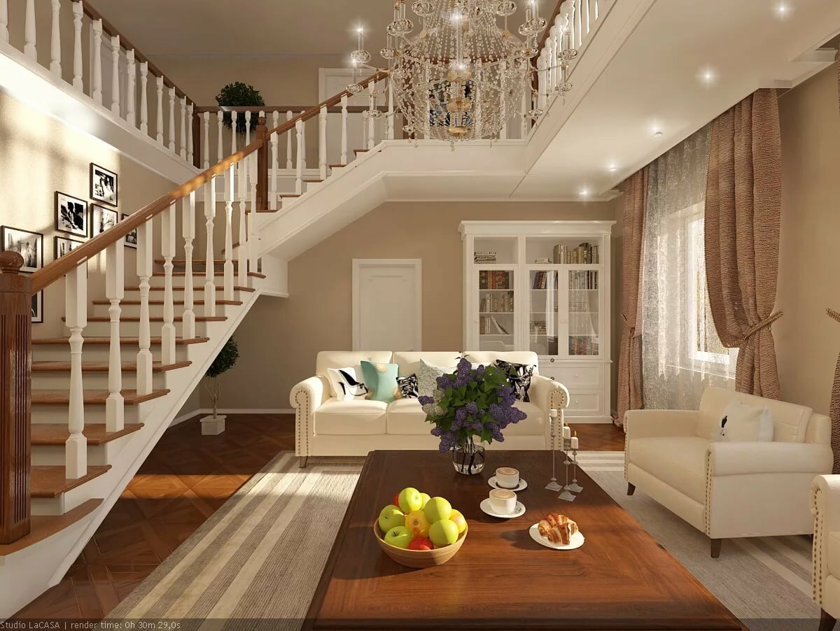 Интерьер двухэтажного коттеджа