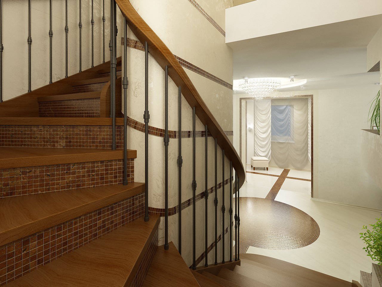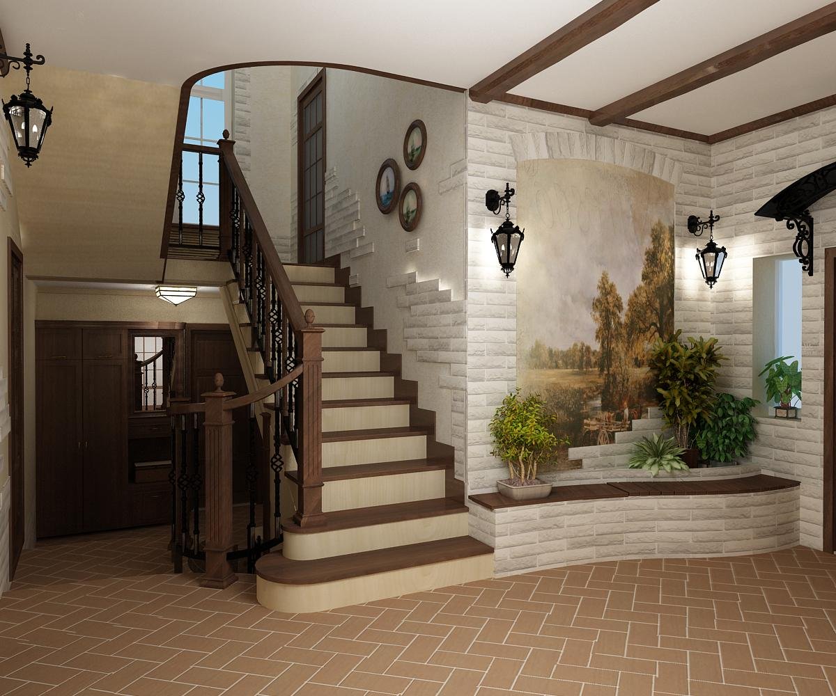 Интерьер холла с лестницей
