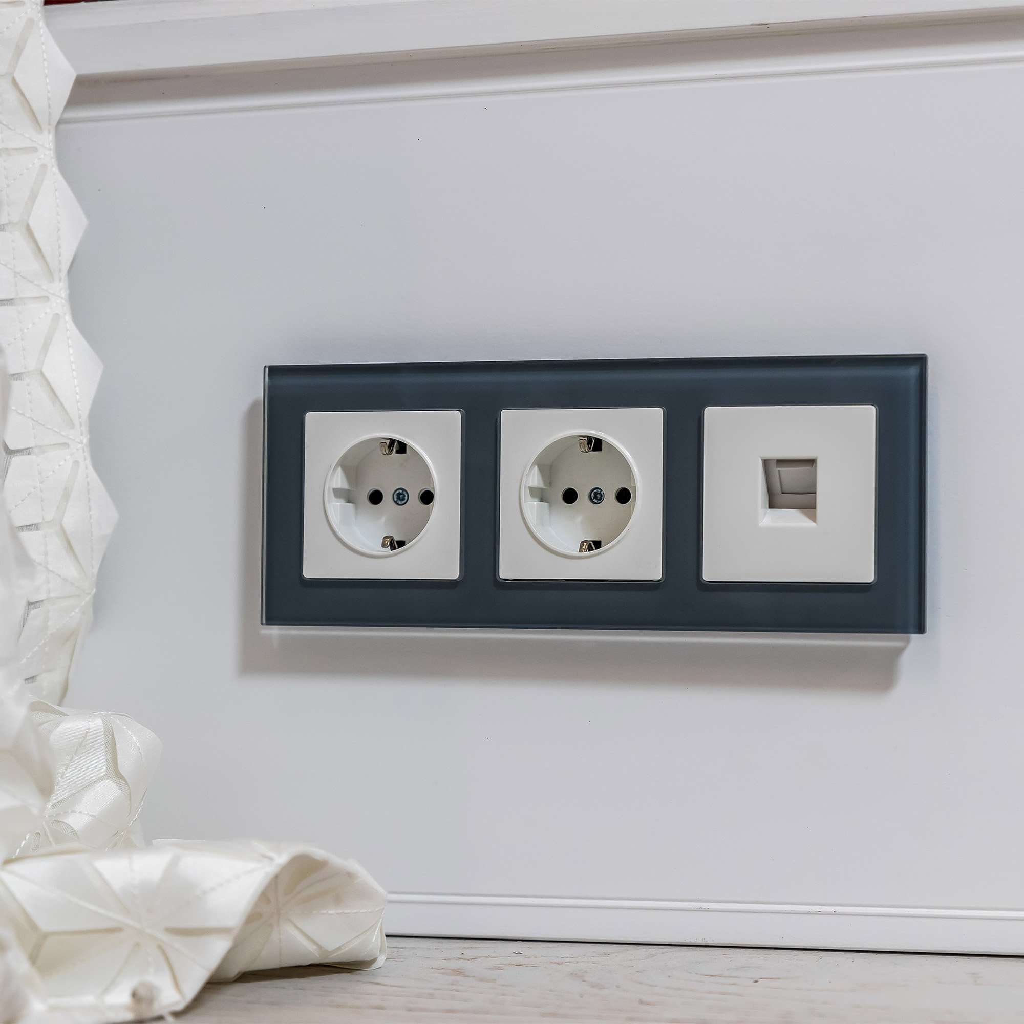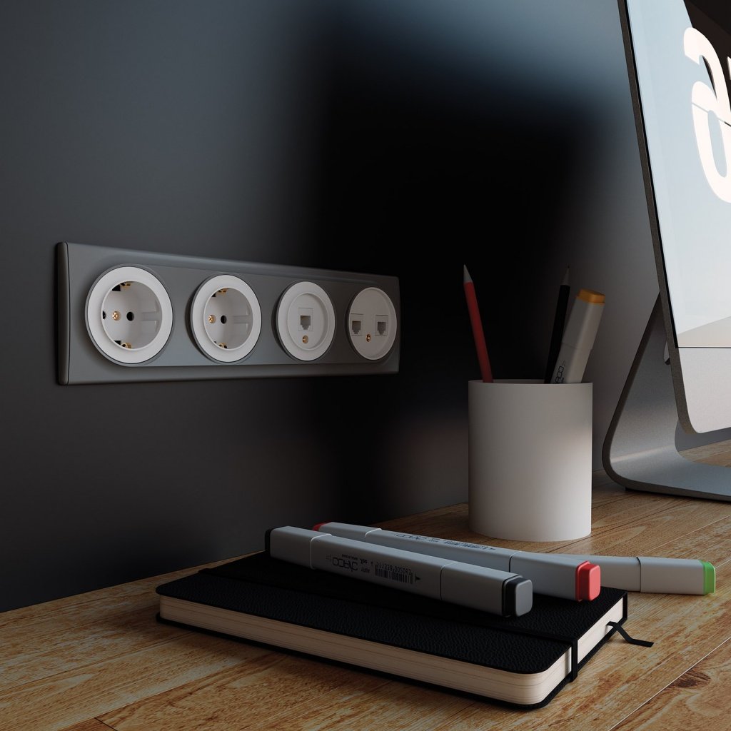 Розетки на серых стенах