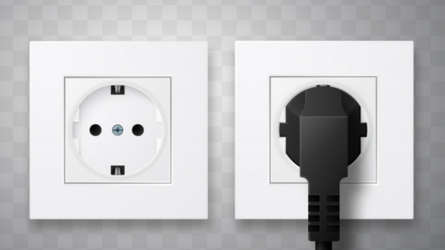 Вилка и розетка на прозрачном фоне