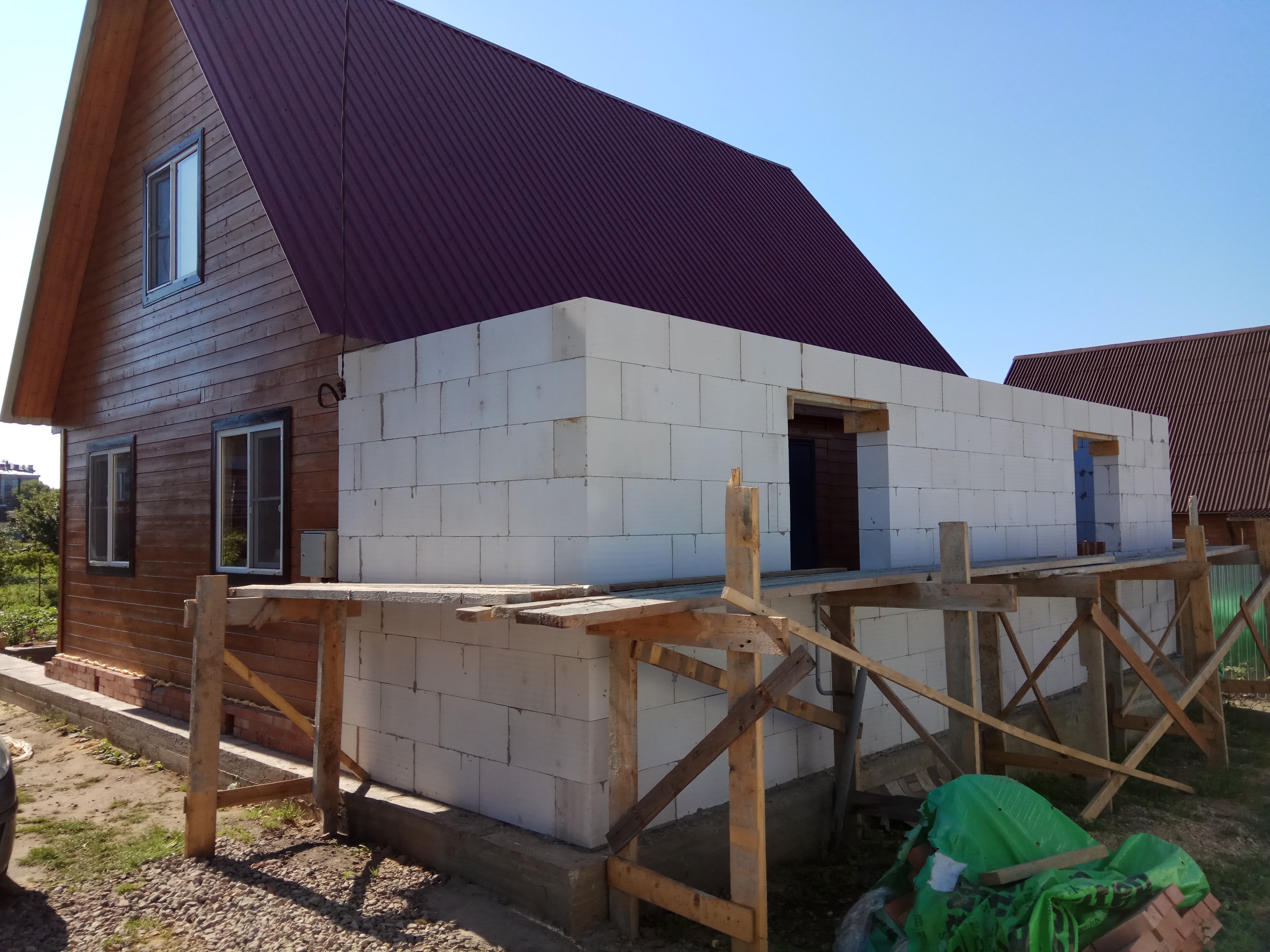 Пристрой к дому из пеноблоков к деревянному дому