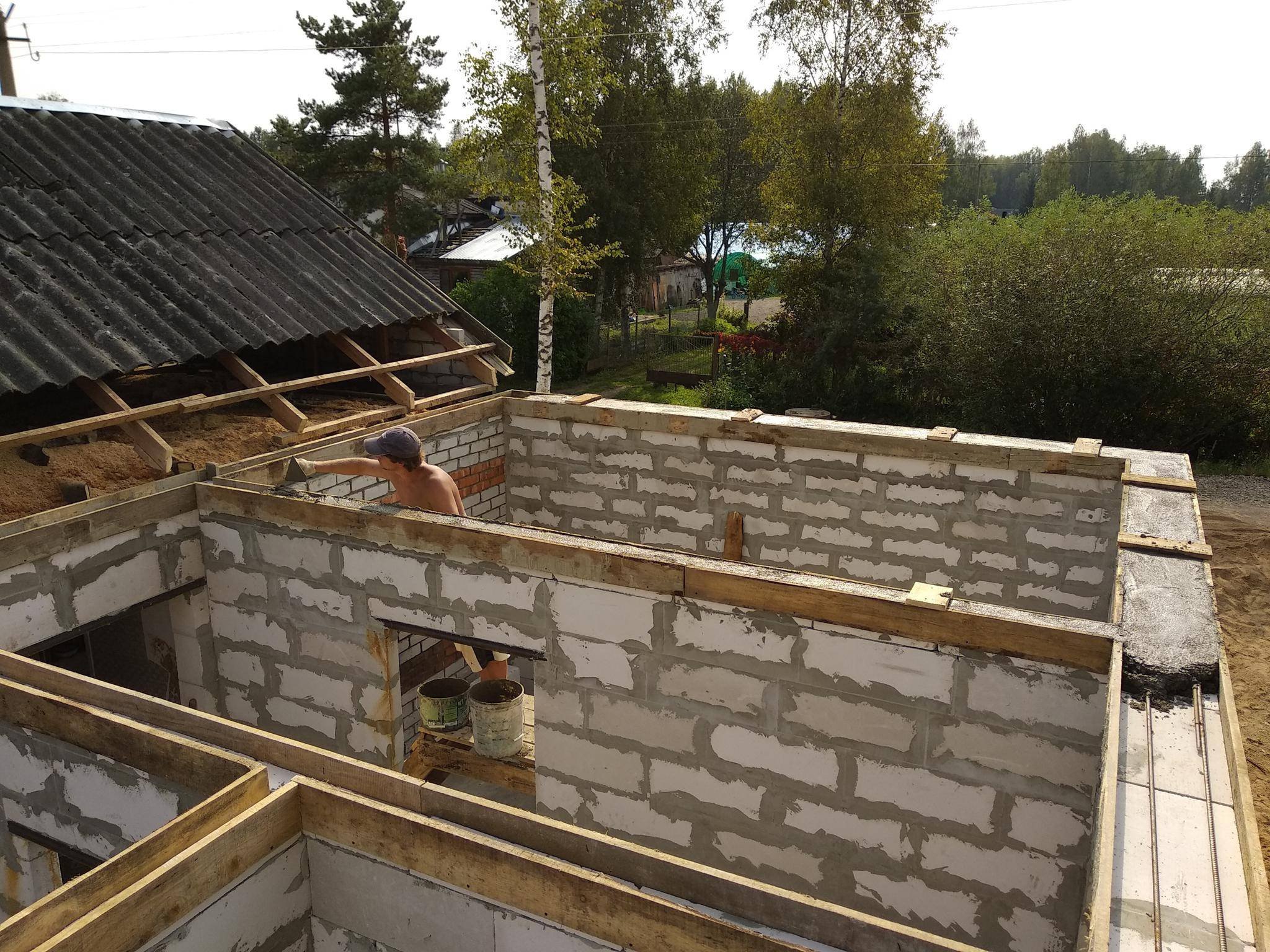 Двухэтажная пристройка к дому из пеноблоков