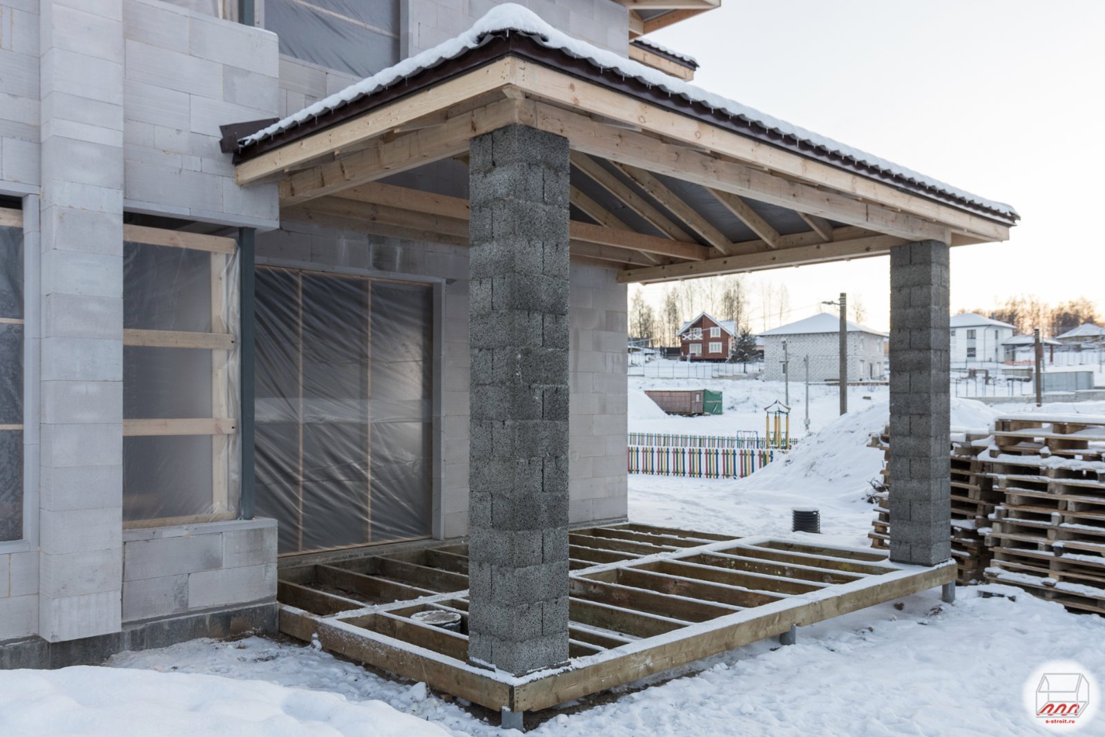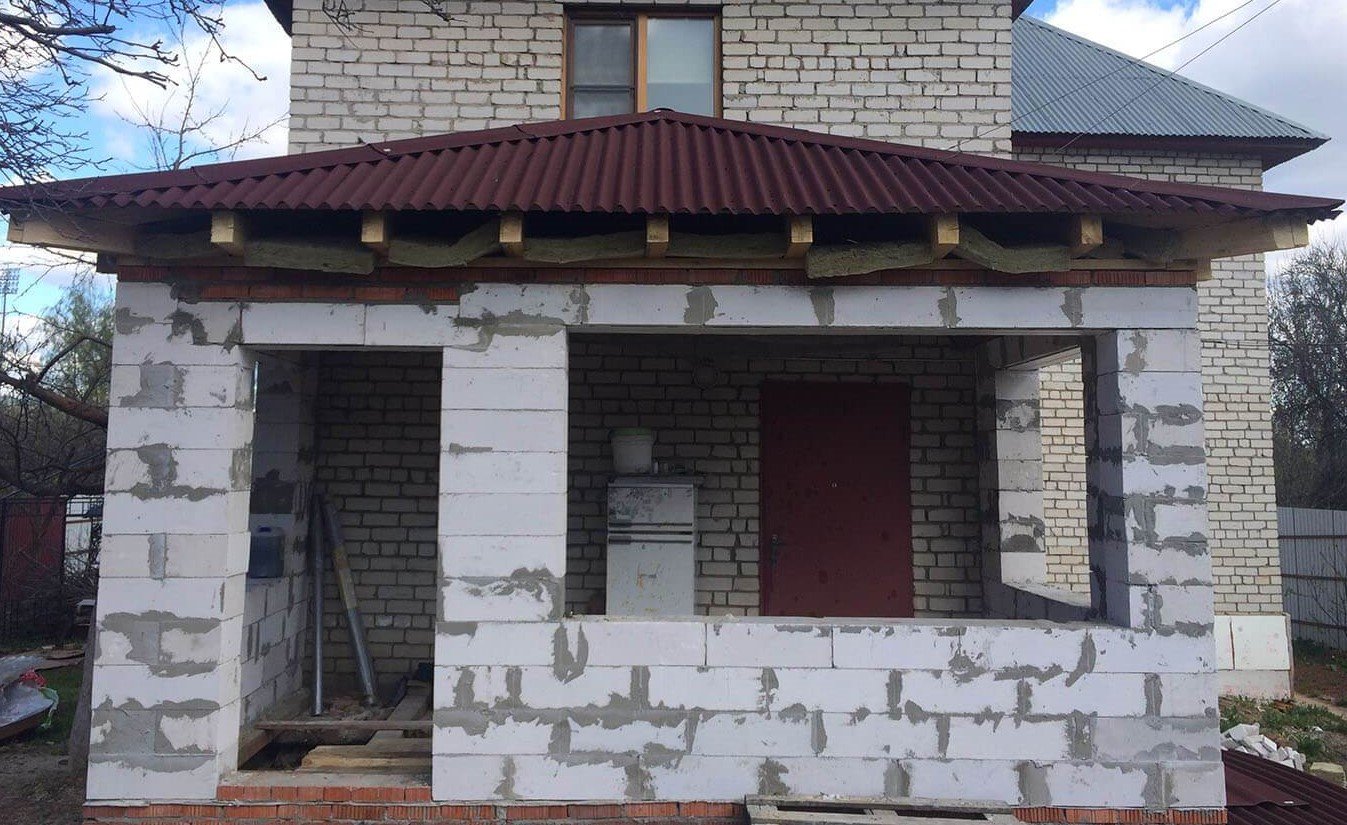 Пристройка террасы к дому из газобетона