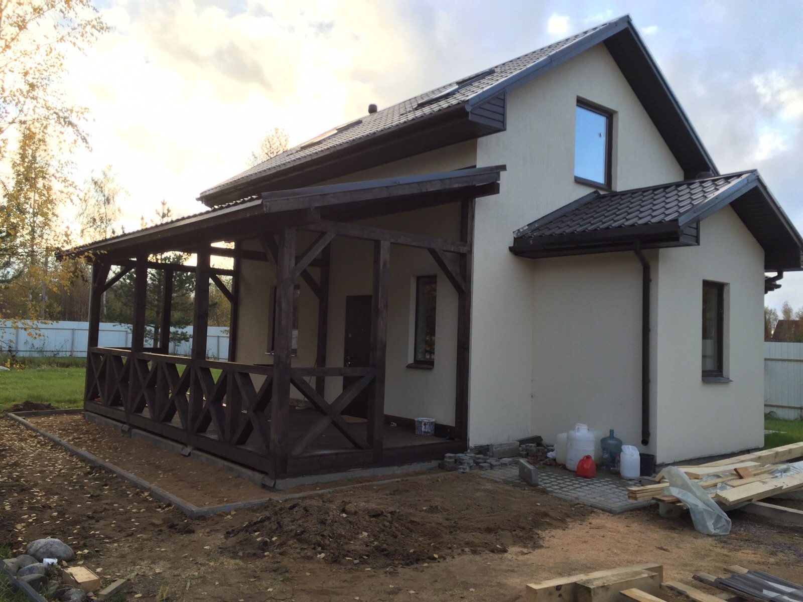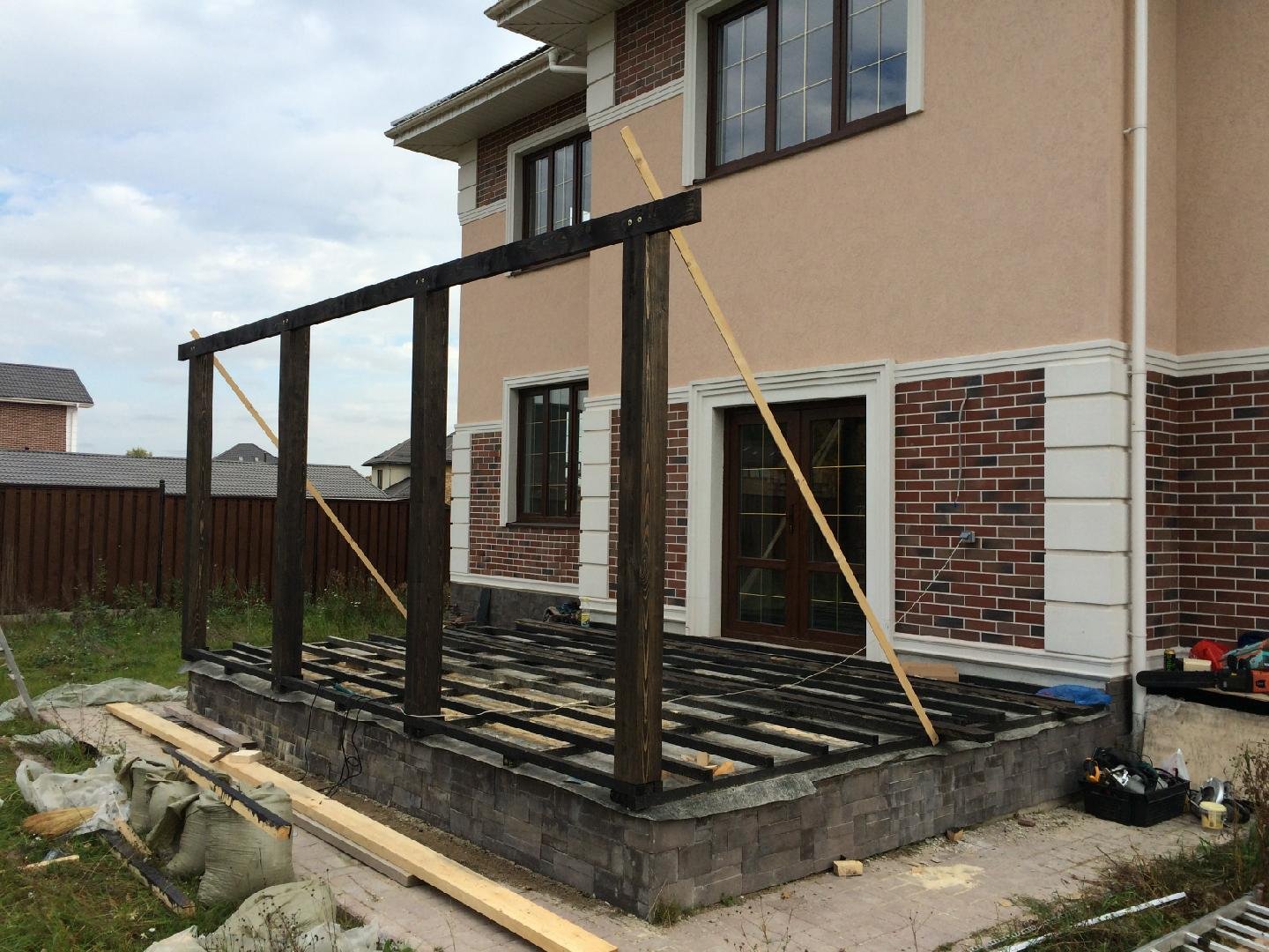 Деревянная терраса к дому из газобетона