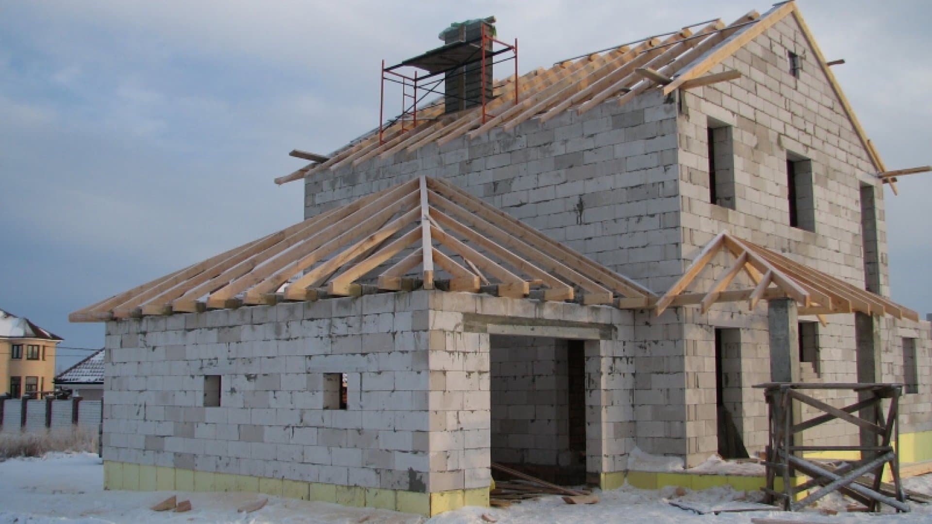 Крыша на пристройку из пеноблоков