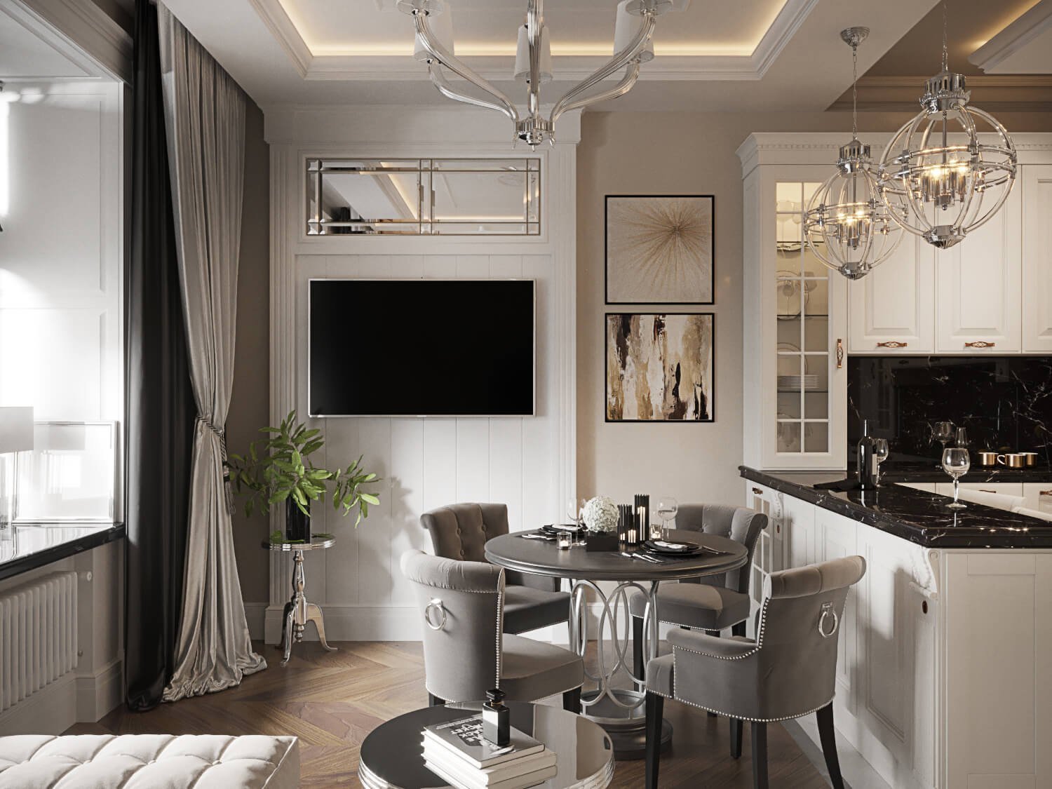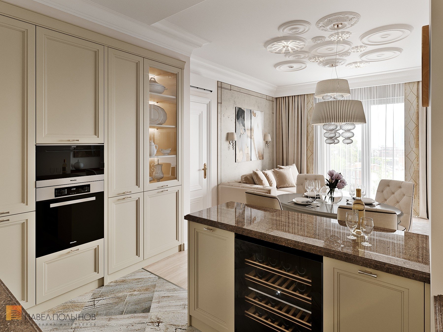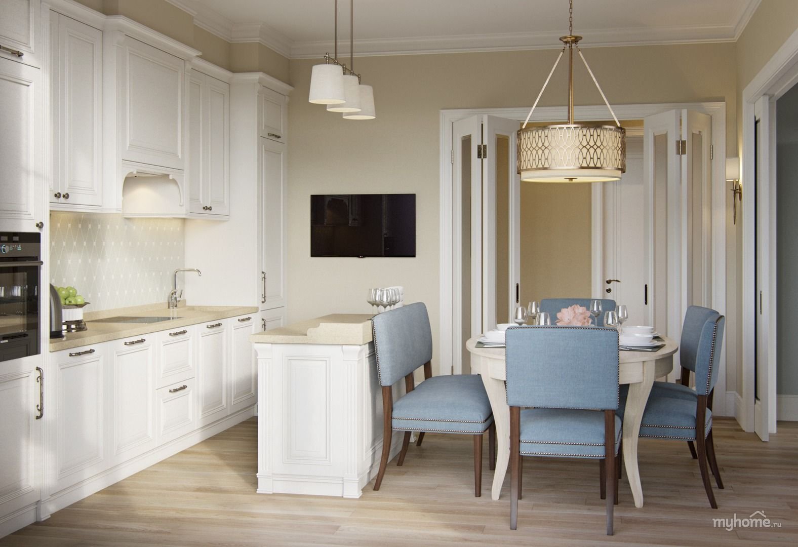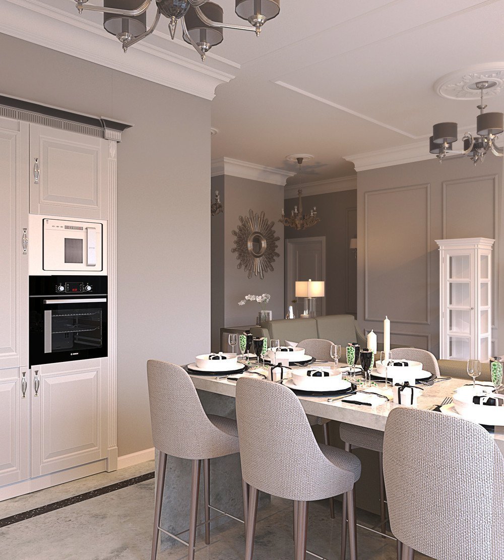 Кухня-гостиная 40 м2 в стиле Неоклассика