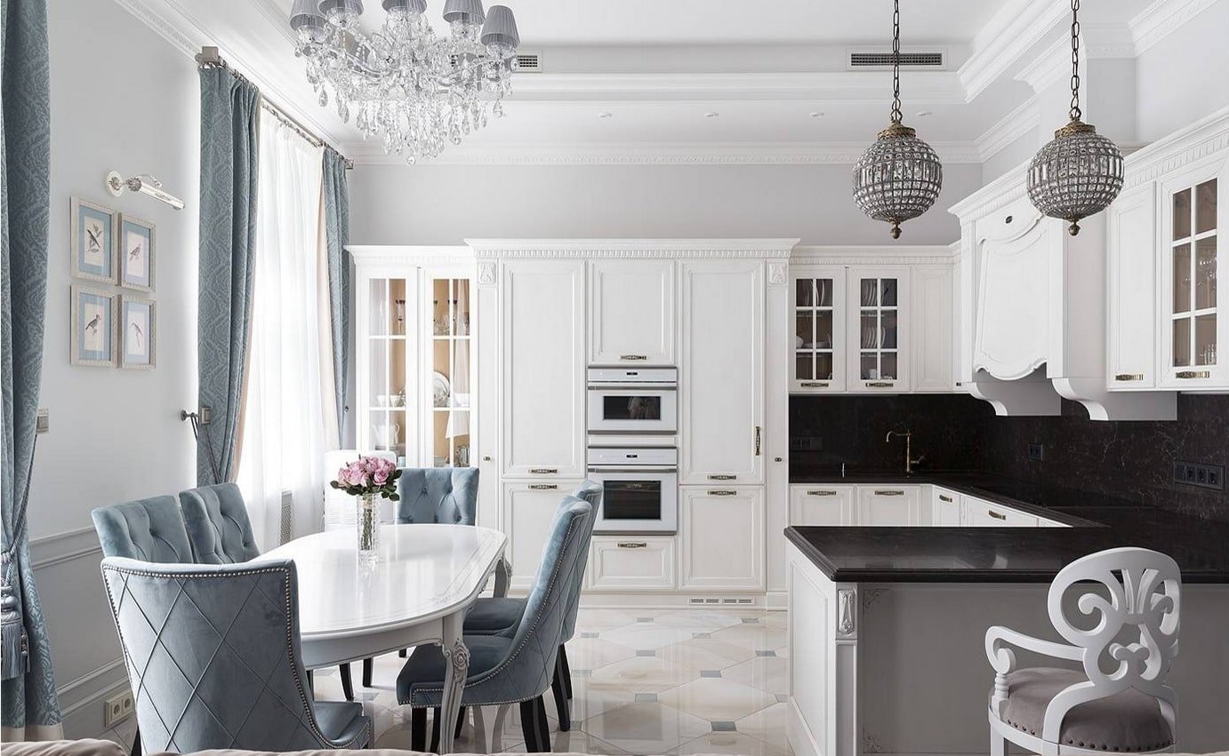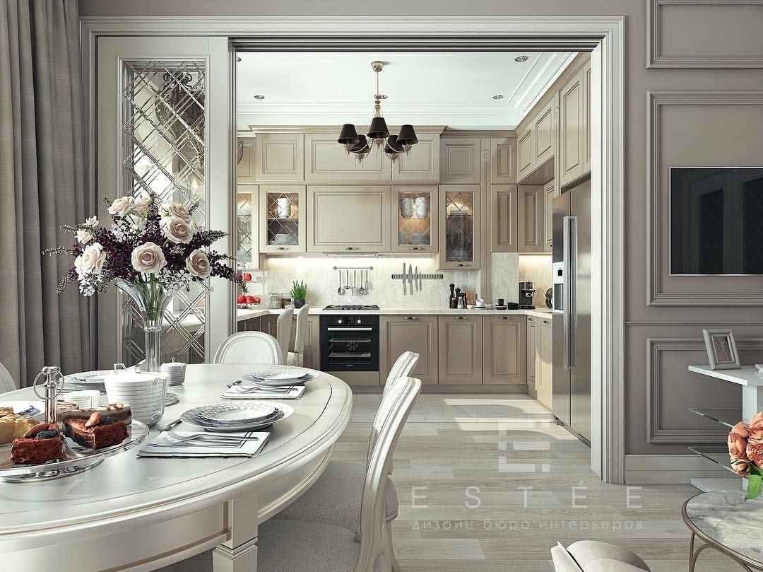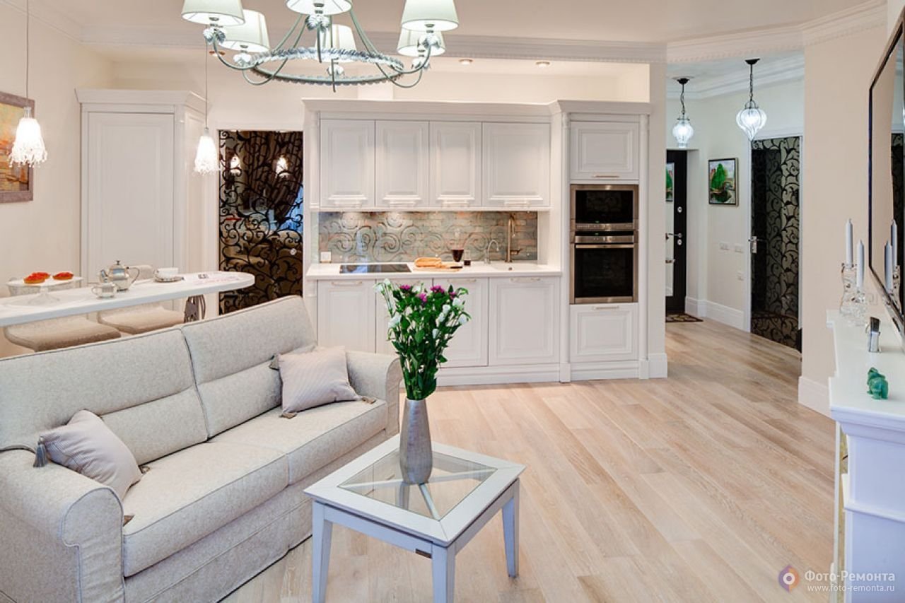 Кухня-гостиная 40 м2 в стиле Неоклассика